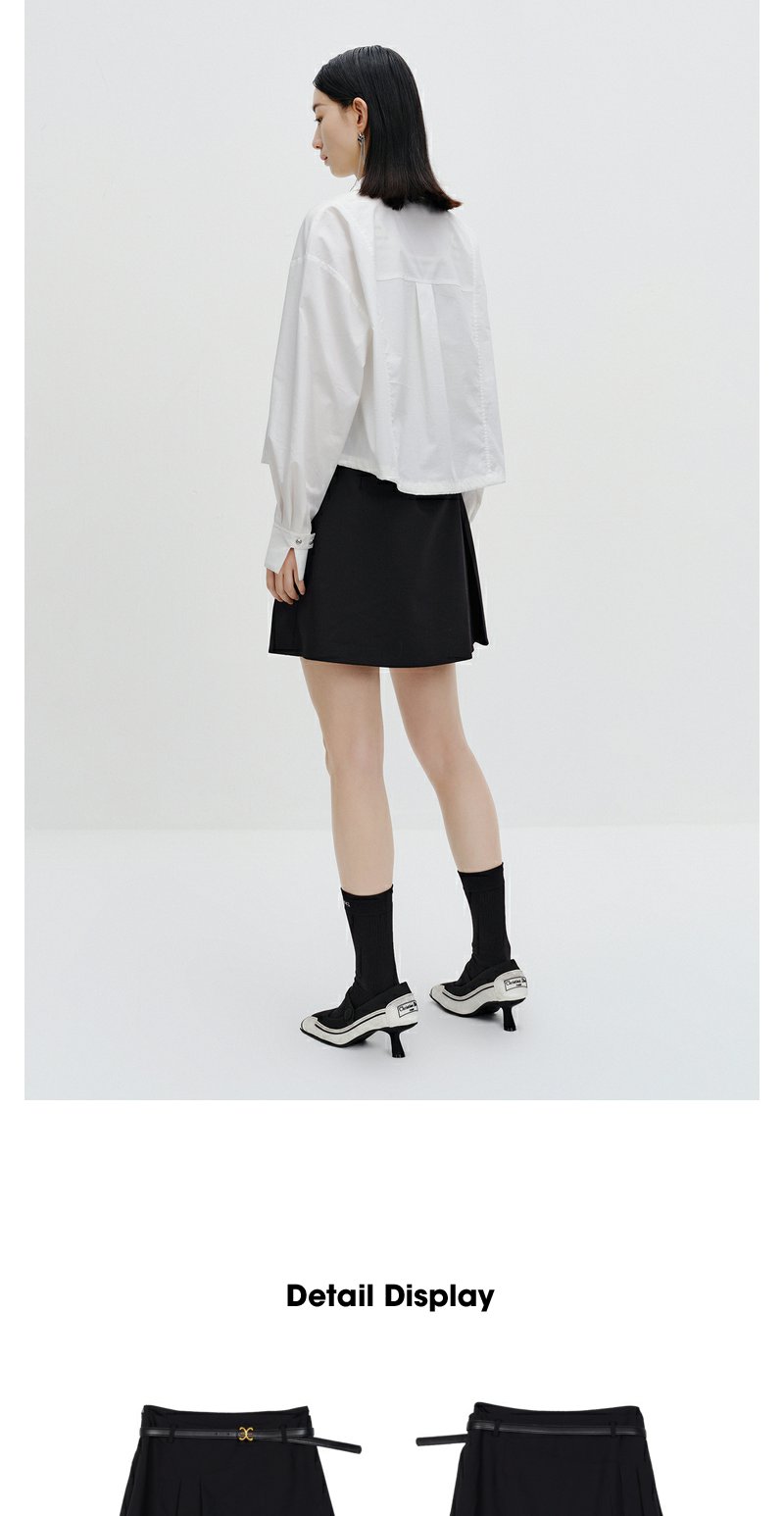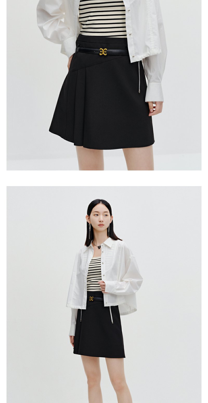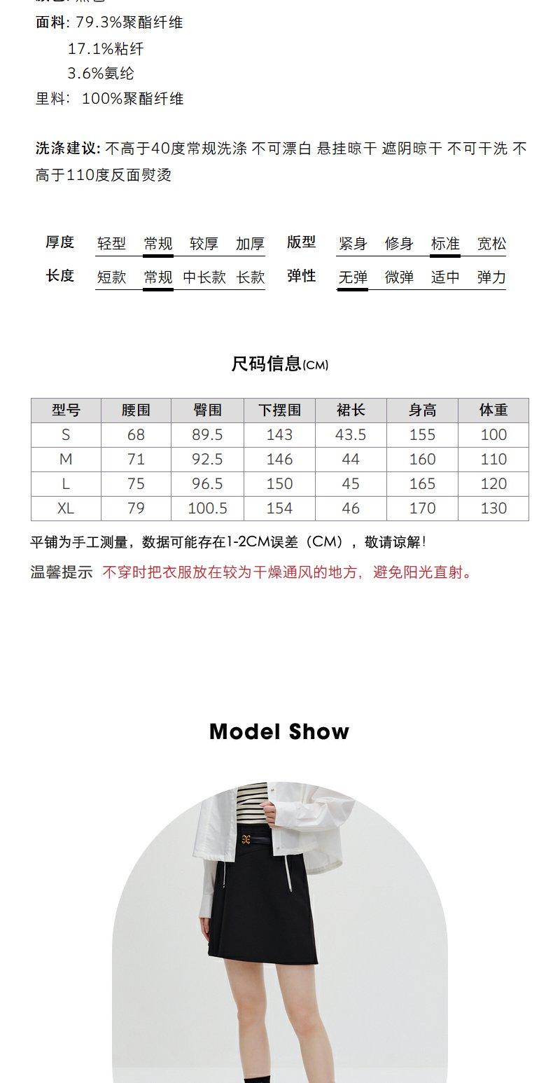 NEELLY纳俪商场同款黑色半身裙女秋季新款半百褶a字裙气质短裙N23071E01025
