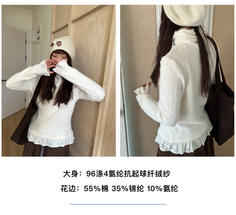 nothe Case布然/NCw2405/「雪绒公主」白色毛绒高领内搭打底衫