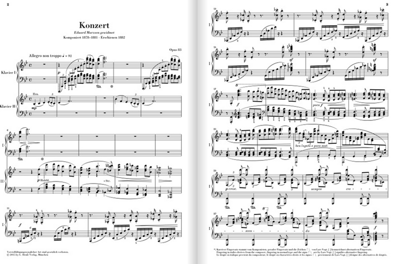 Shortly after a rather unsuccessful performance of his Piano Concerto, Johannes Brahms wrote to Joseph Joachim in 1859: "... a second one will sound different." Nevertheless, a good 20 years elapsed before that second concerto finally took form, and only in 1881 was he able to announce: "I wanted to tell you that I have written a very small piano concerto with a tiny little delicate Scherzo." Henle's piano reduction of this anything-but-little symphonic concerto presents the solo part as it appears in the respective, recently published volume of the Brahms Complete Edition (51486020). Lars Vogt has succeeded in taming the opulent piano writing withis fingerings. The refined arrangement of the complex orchestral part for the accompanying second piano stems from Johannes Umbreit.