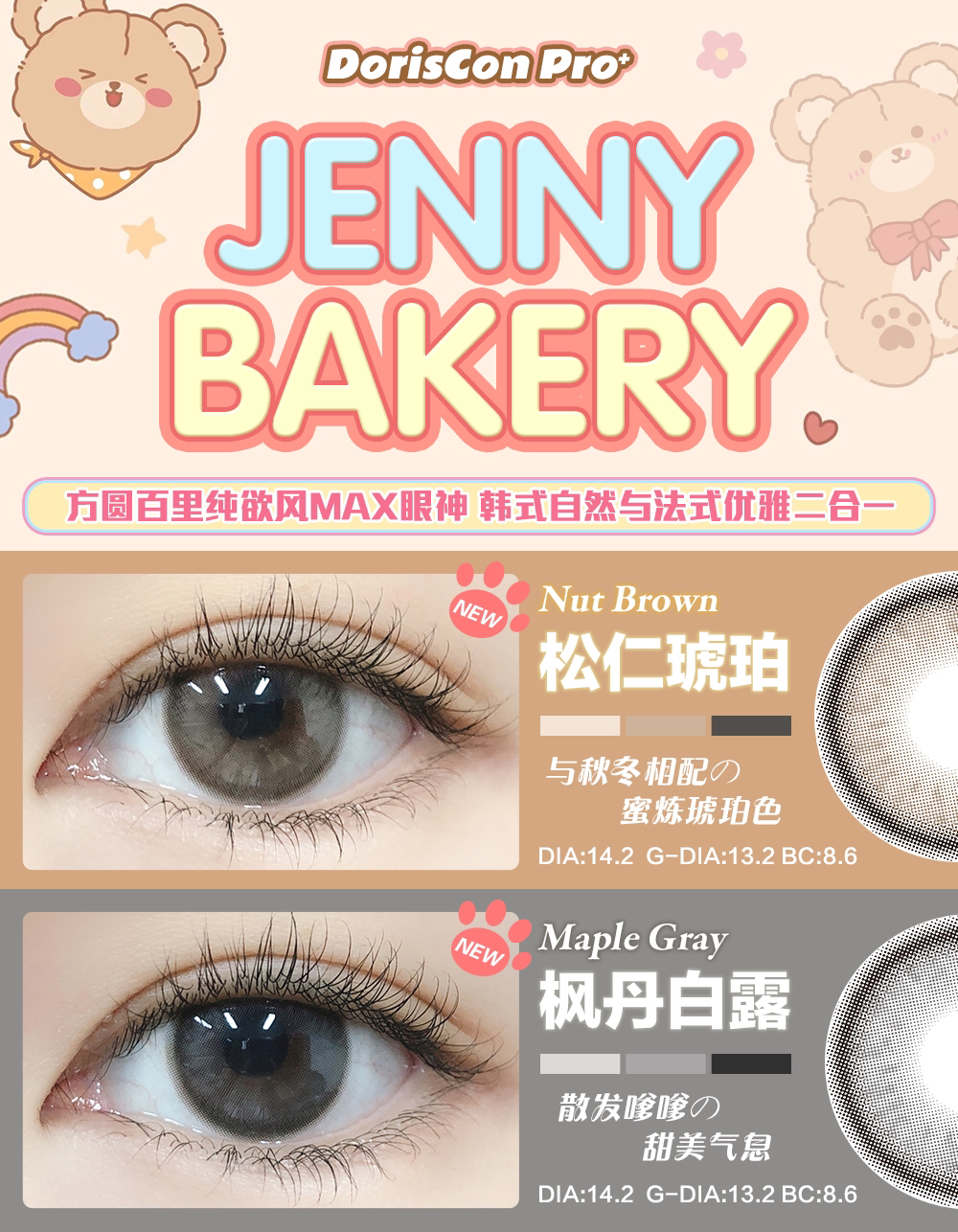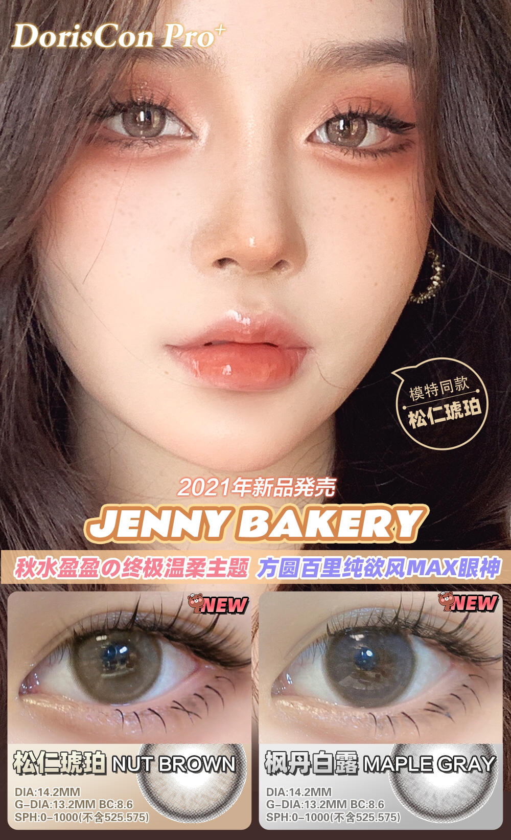 doriscon pro 松仁琥珀 高端美瞳 14.2mm 年抛 含硅水凝胶