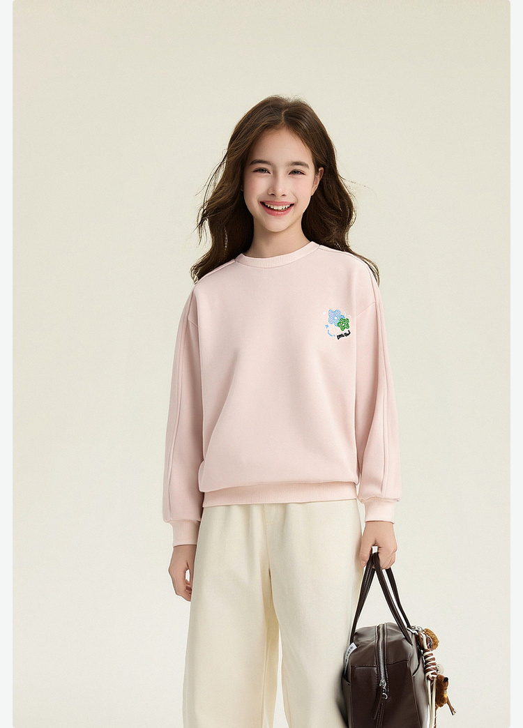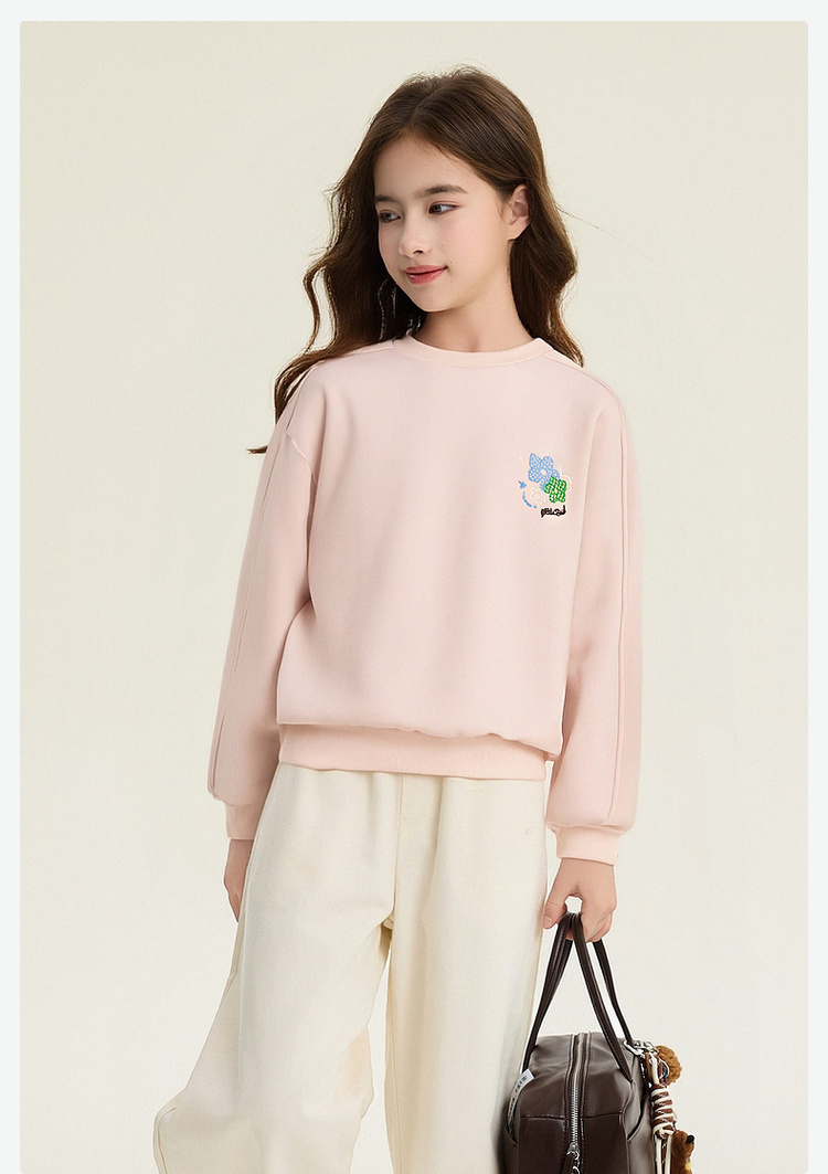 笛莎Deesha 童装女童卫衣2026春新款精致小图案圆领卫衣