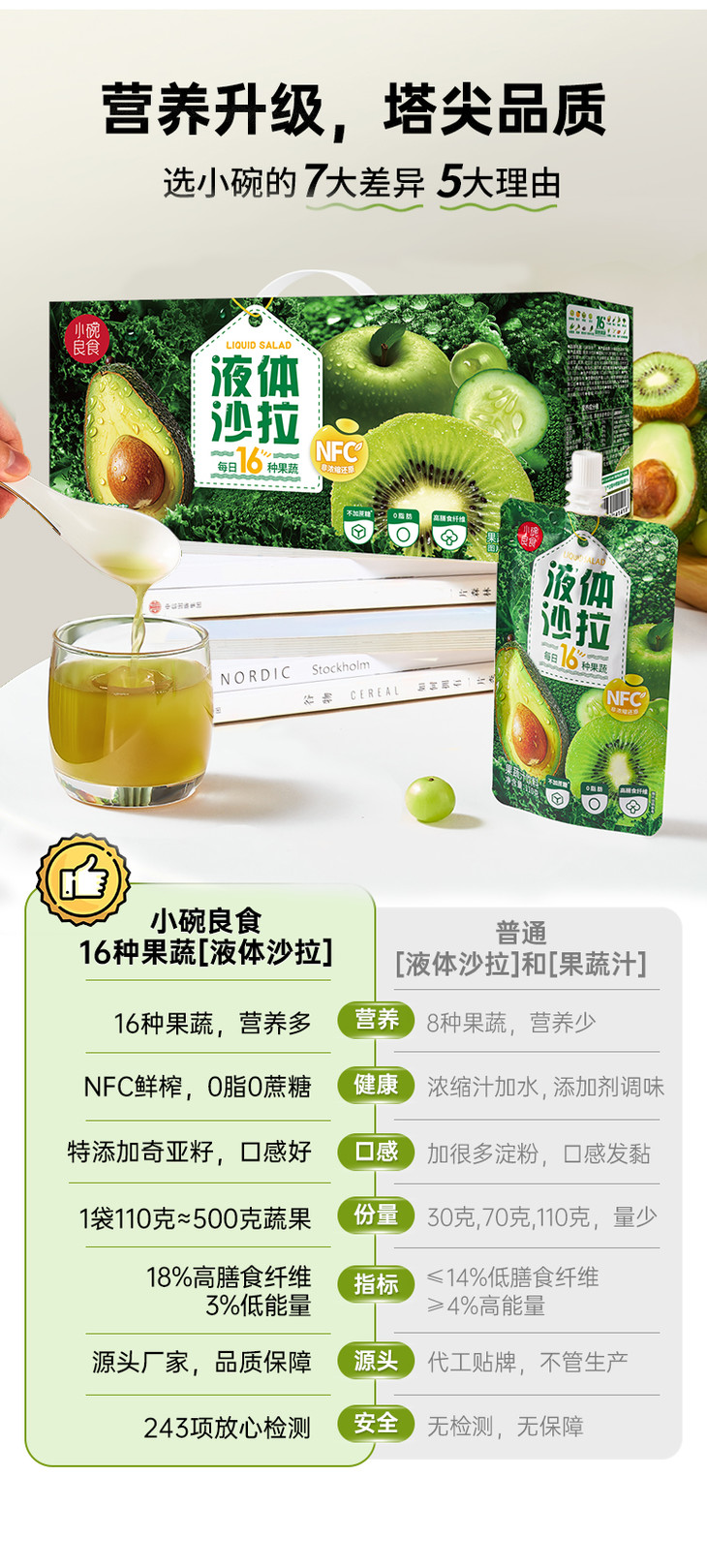 【小碗良食官方】可以喝的液体沙拉 16种果蔬NFC奇亚籽蔬菜汁110g 0蔗糖补充膳食纤维