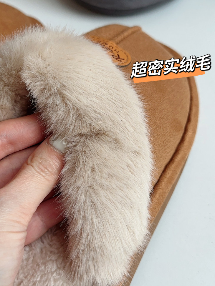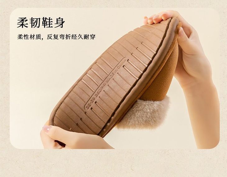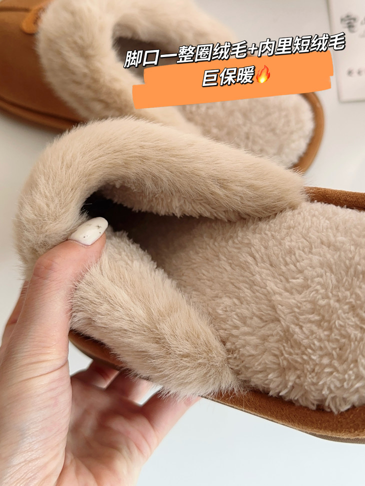 ✅细节实拍 🔺加宽鞋口+蓬松毛边,脚胖也能轻松塞 🔺外层仿鹿皮绒,锁温效果×2 🔺内里加厚长绒,360°包裹双足,像踩进热乎棉花堆 🔺防滑耐磨鞋底,止滑纹里,轻松应对各种地面