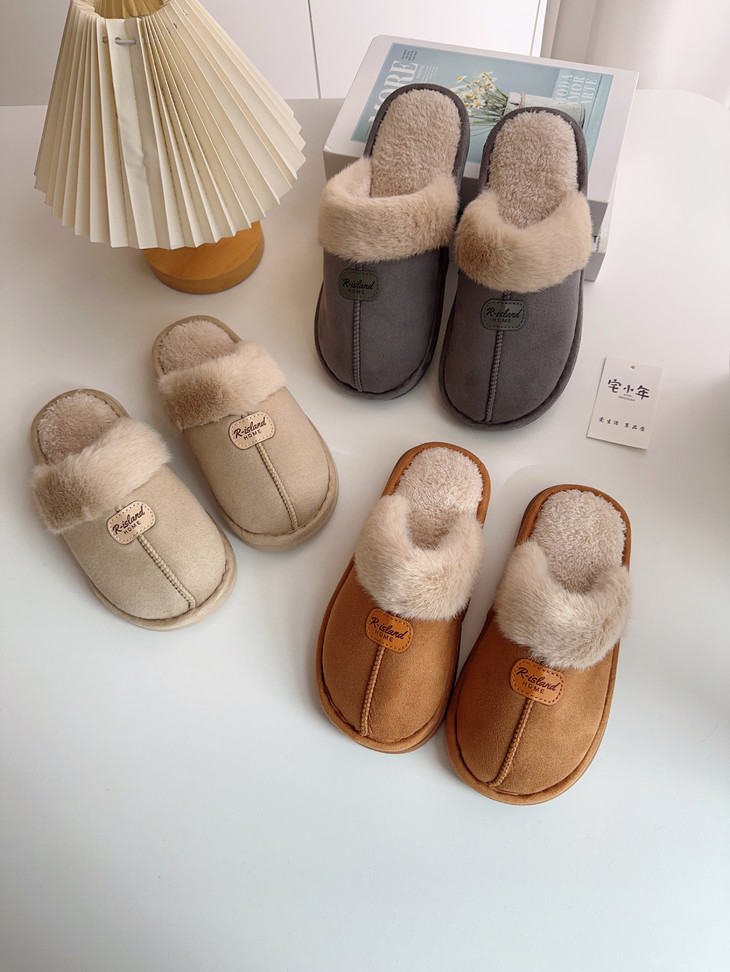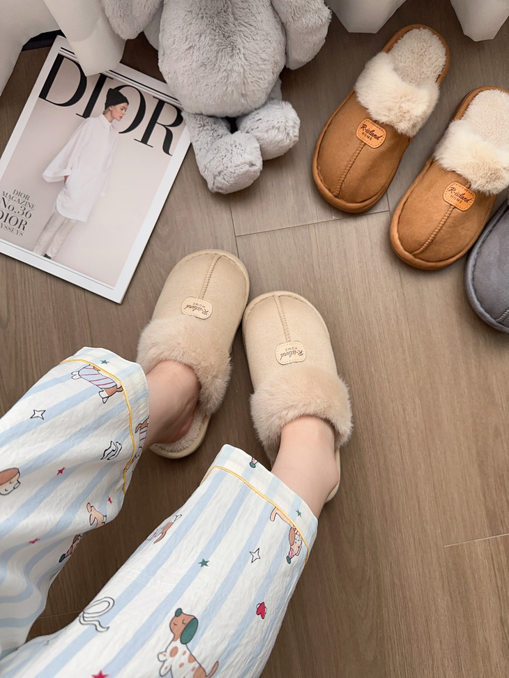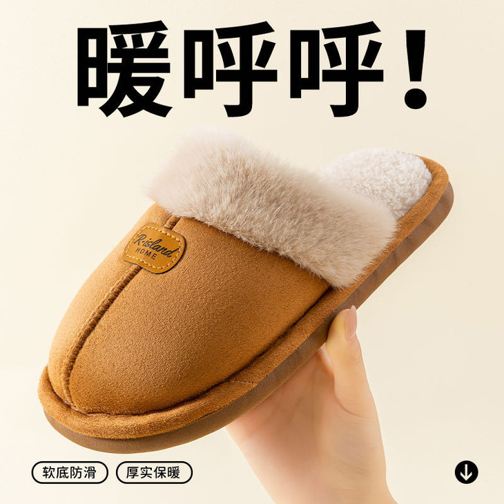 【材质】仿鹿皮绒+毛绒+PVC鞋底。