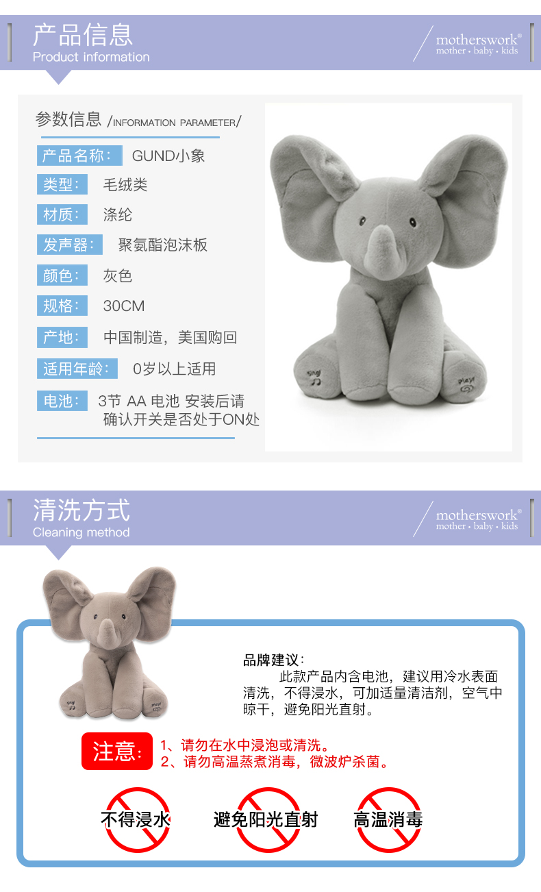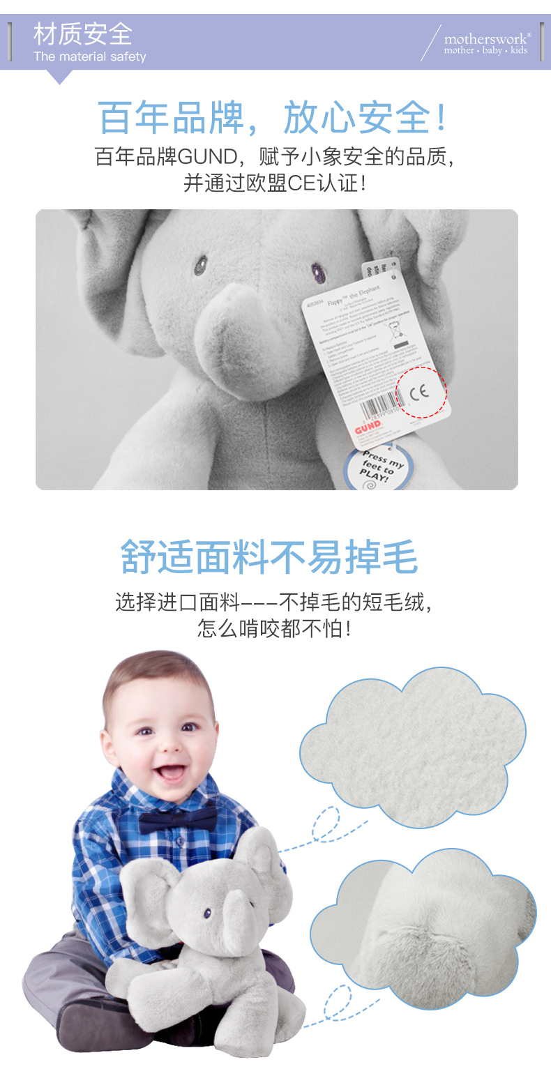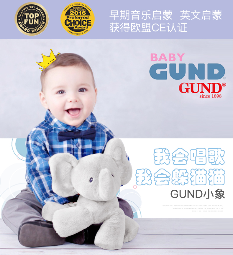 BABY GUND 菲比小象躲猫猫会唱歌 毛绒玩偶