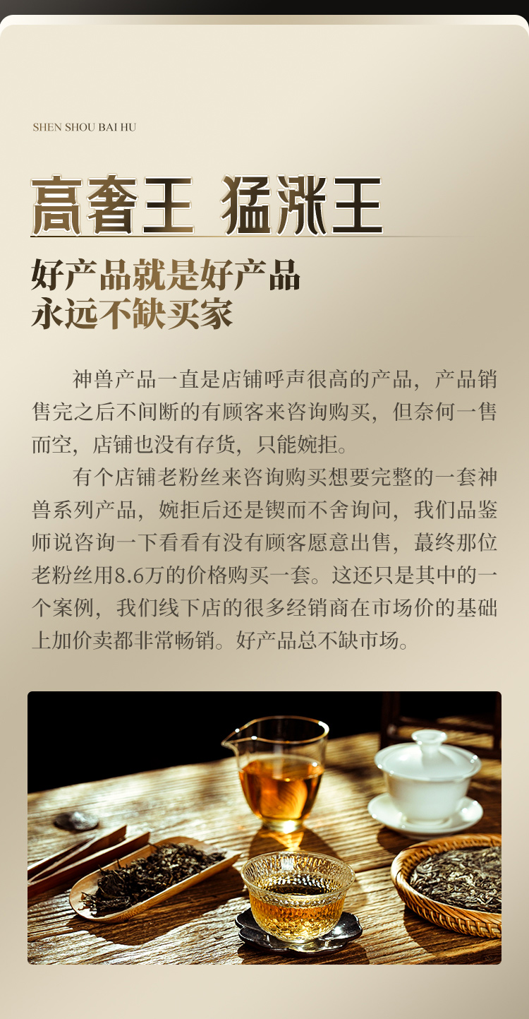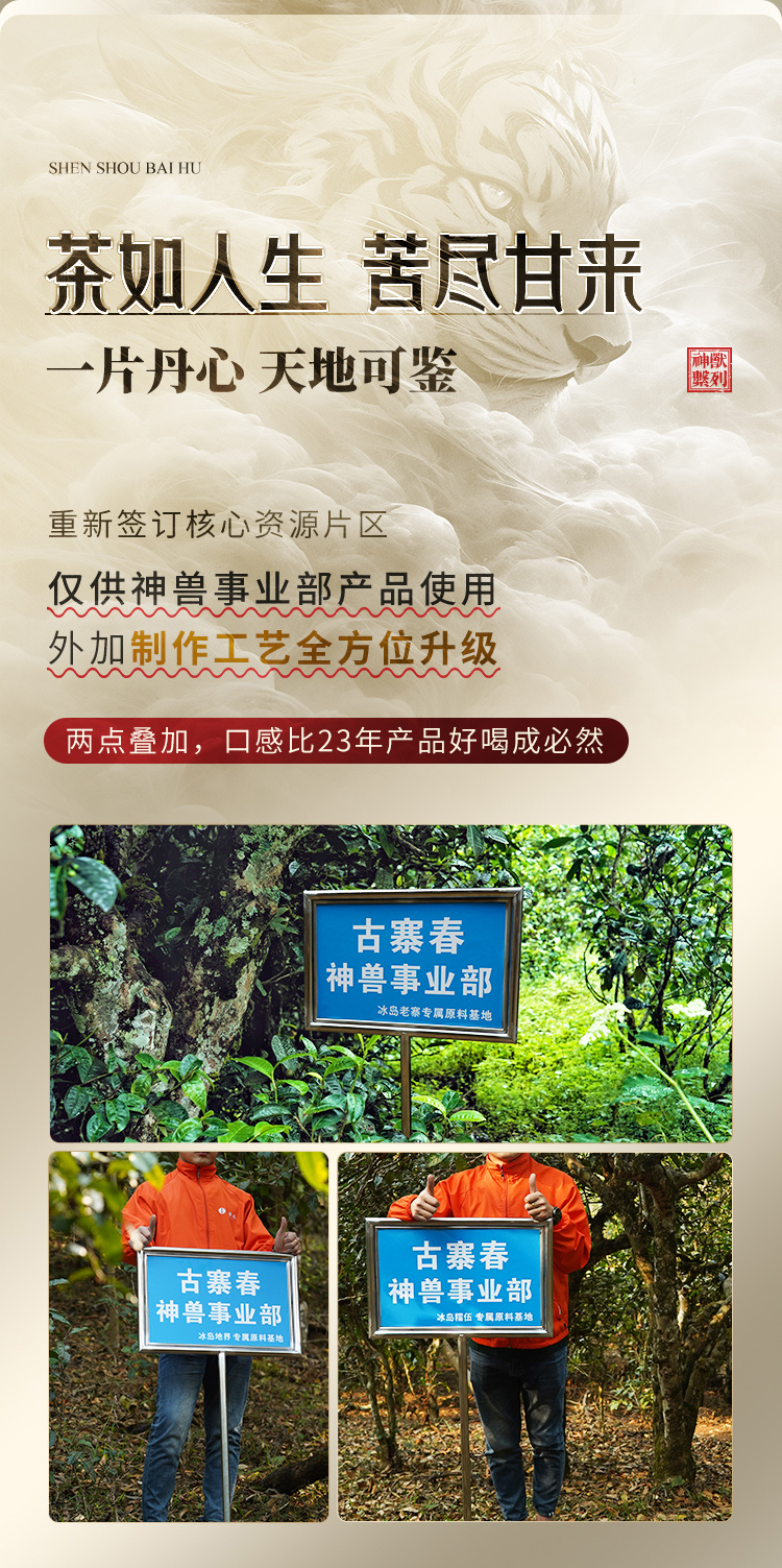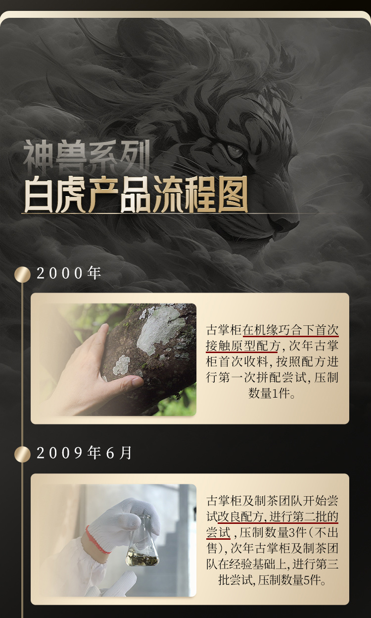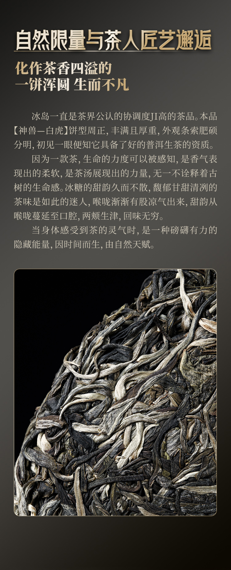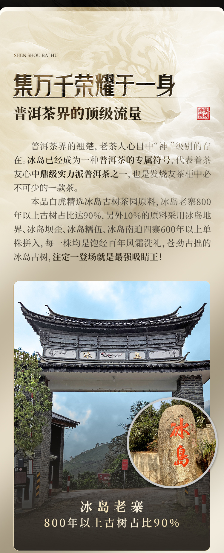 2024年春茶预售【神兽—白虎】超越纯料冰岛老寨的存在,神兽事业部独立出品高奢品牌,首发结束即封藏再无,限量100箱 拍5箱发6箱,前24小时下单加送同款龙珠一罐,每单额外赠送杯托*5