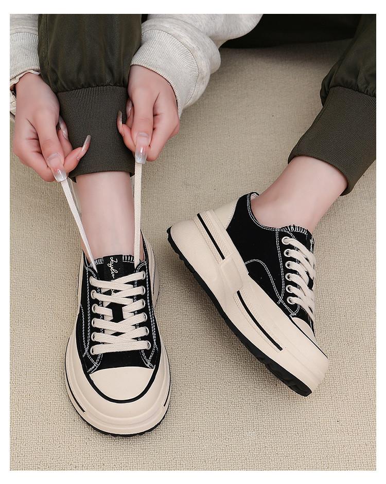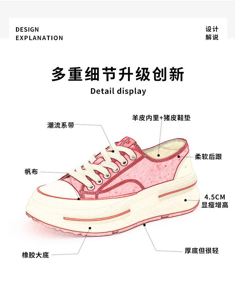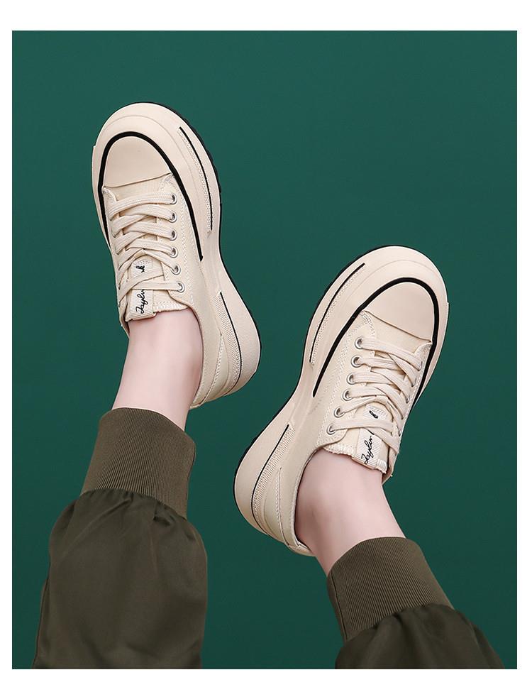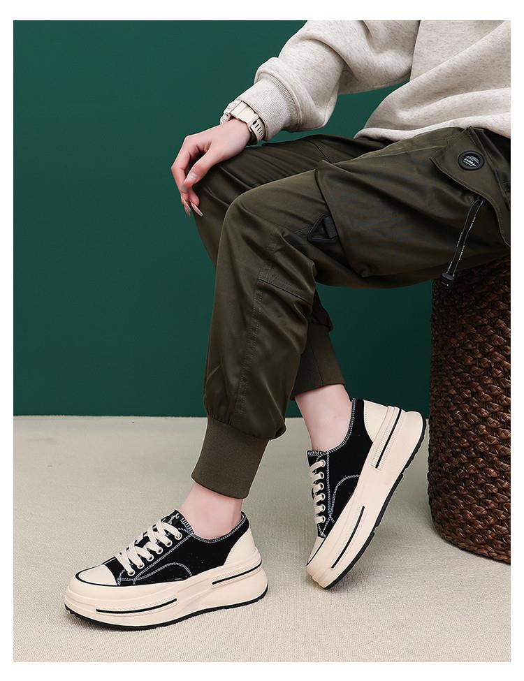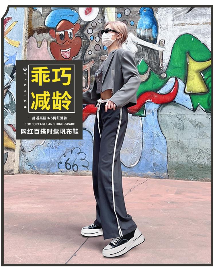 内里头层羊皮帆布鞋2024春夏新款女士增高厚底鞋女休闲百搭鞋子女