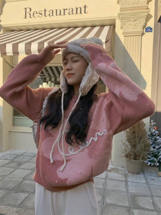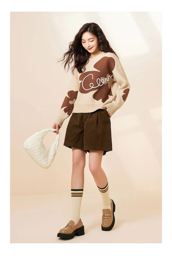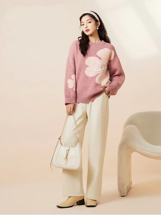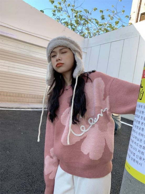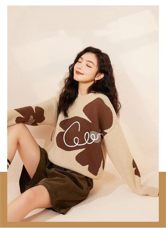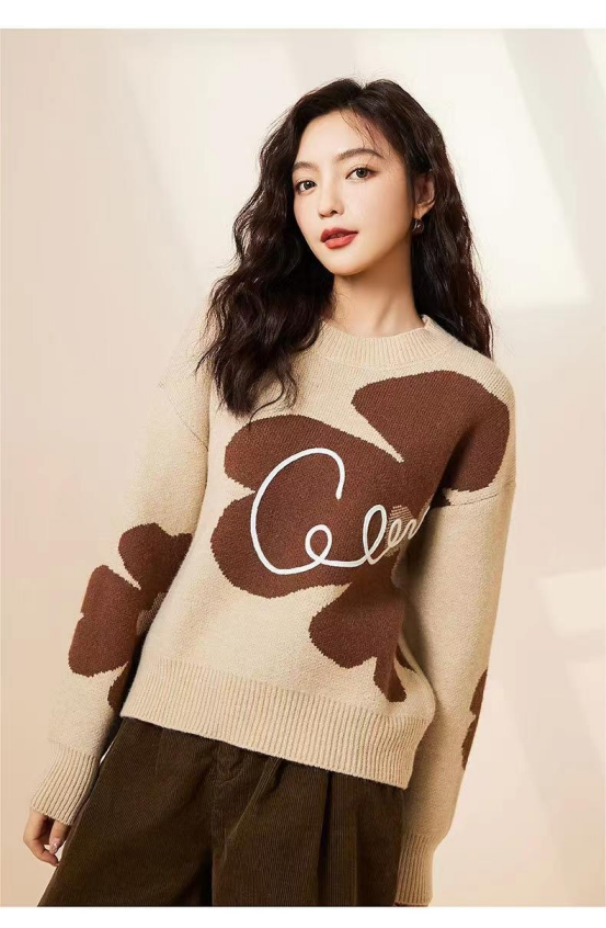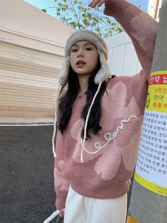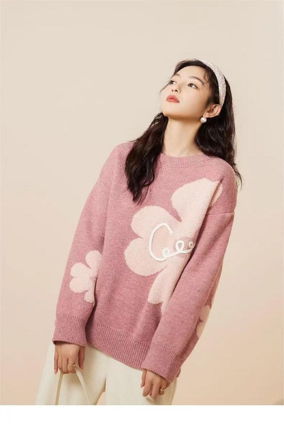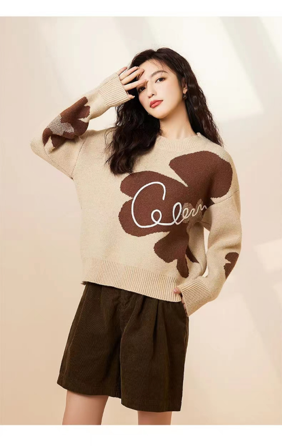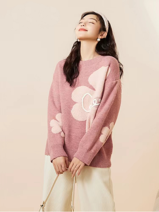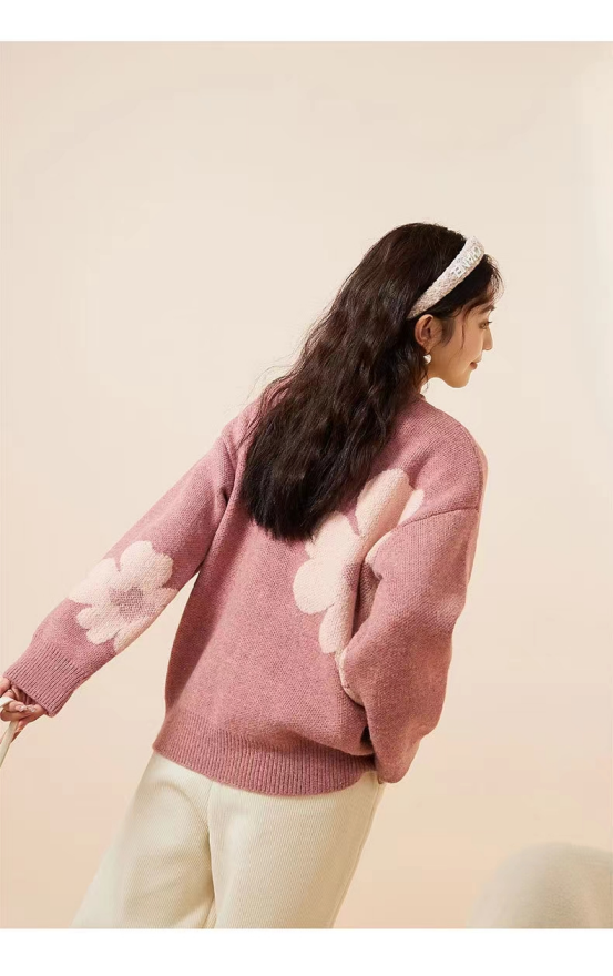 【复古花朵针织毛衣】