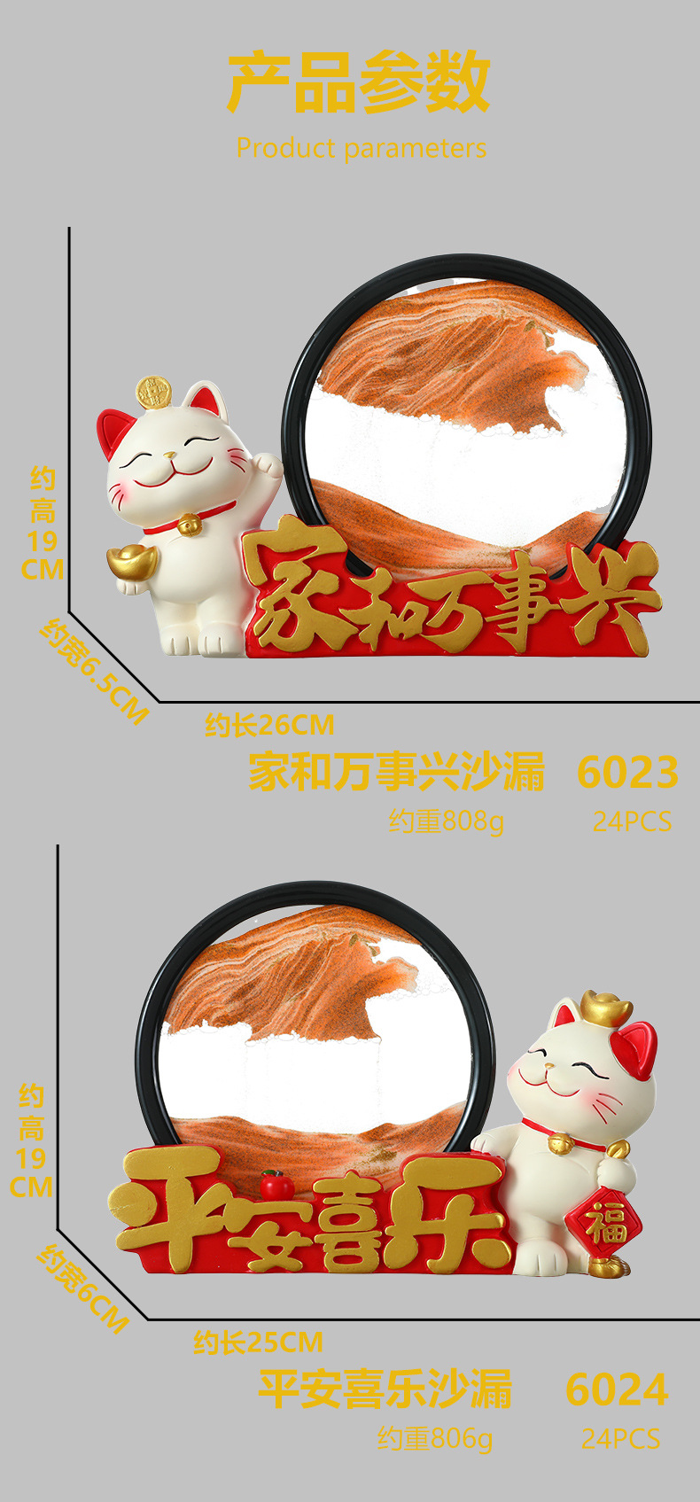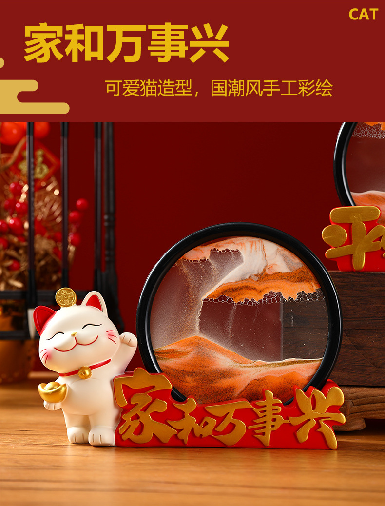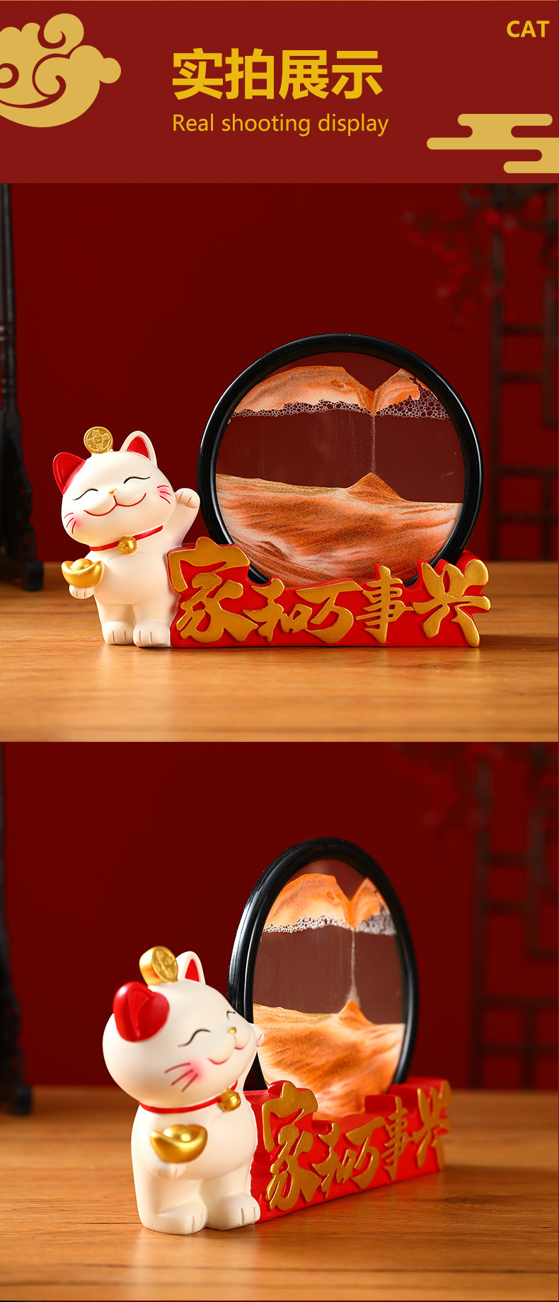 【家居氛围摆件!招财猫沙漏摆件】绝美流沙画摆件客厅酒柜电视柜家居装饰品轻奢艺术沙漏礼物,可爱猫造型,国潮风手工彩绘。ry