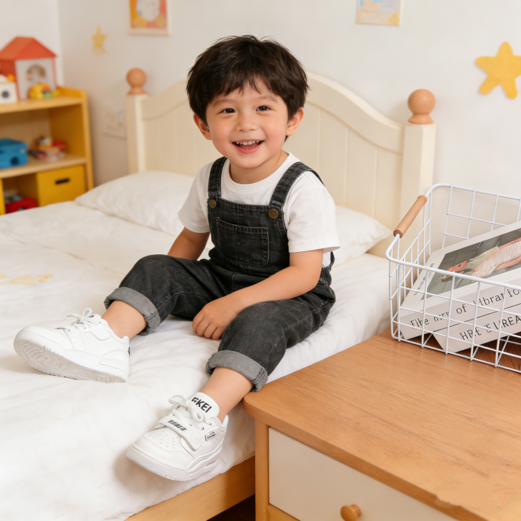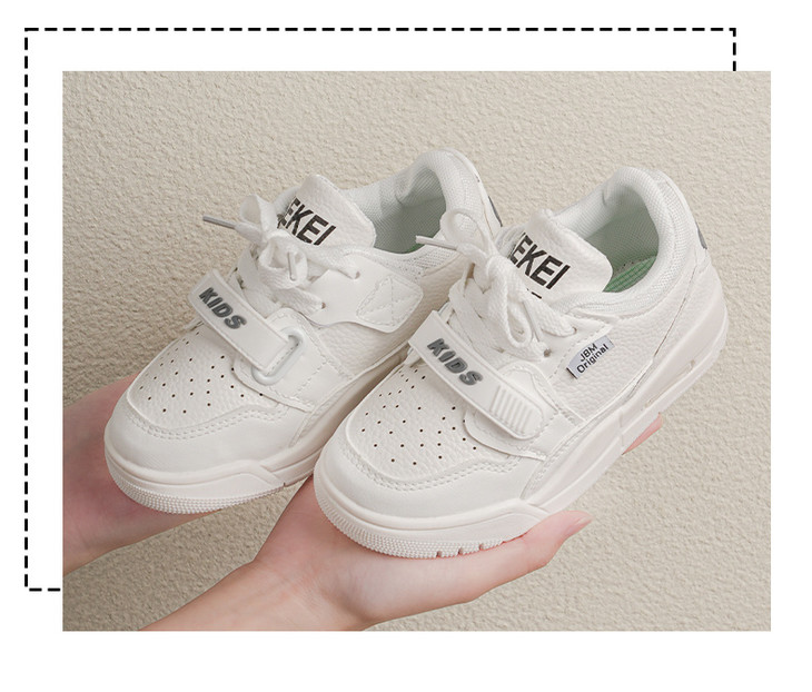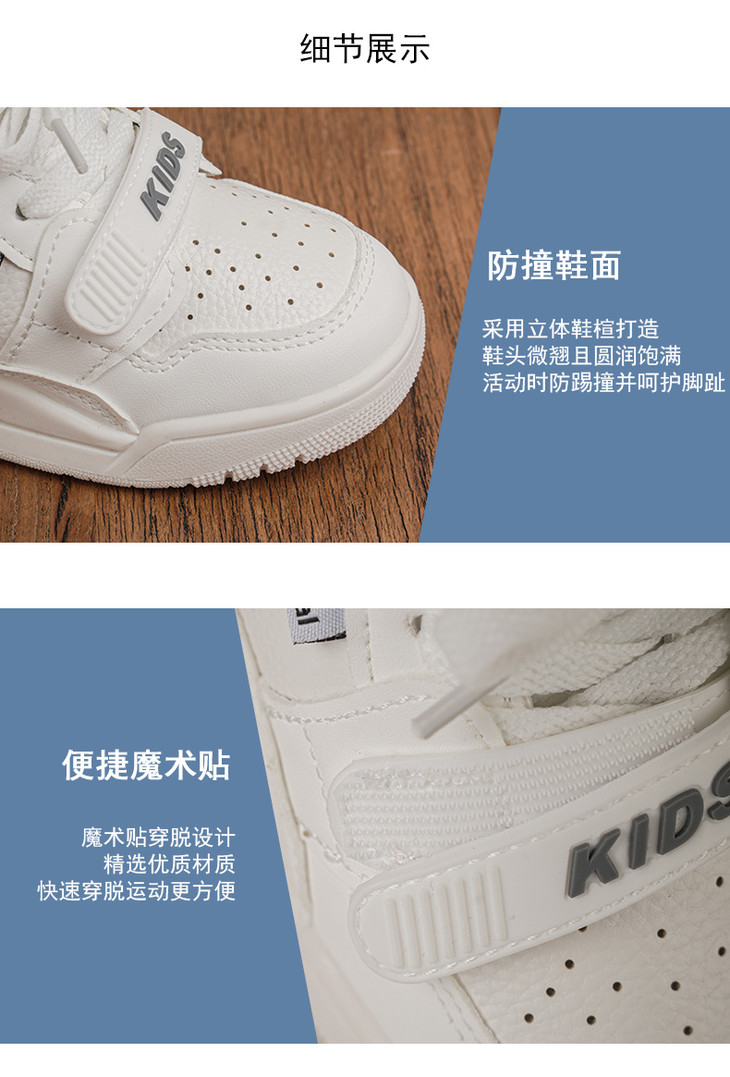 ✅ 硬核品质 一眼放心 ✔合成革鞋面 + 透气内里 耐造易打理,防水防污,搭配亲肤透气内里, 夏天不闷脚、冬天不冻脚,四季穿都合适 ✔TPR 防滑耐磨鞋底 软弹缓震、抓地稳,凹凸纹理设计, 跑跳不打滑,体育课、户外撒欢、日常上学全 hold 住 ✔重工魔术贴 + 鞋带双固定 潮酷有型,包裹性更强, 不易松脱,走路更跟脚,娃自己也能快速穿脱 ✔防撞鞋头设计 立体鞋楦打造,鞋头微翘圆润饱满, 活动时防踢撞,更好呵护宝宝脚趾 ✔2.5cm 舒适跟高 隐形增高,显腿长, 同时保证走路稳当,保护宝宝足弓发育