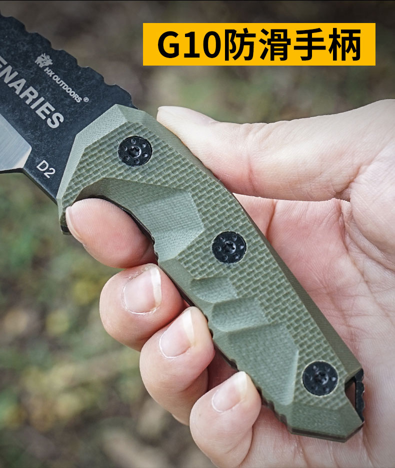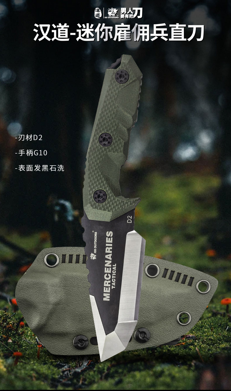 汉道-【迷你雇佣兵】D2钢高硬度战术直刀野外求生军刀户外小刀