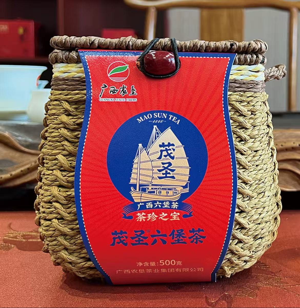 广西农垦茂圣正宗六堡茶梧州特产黑茶2016年陈化500g/笠送礼盒装
