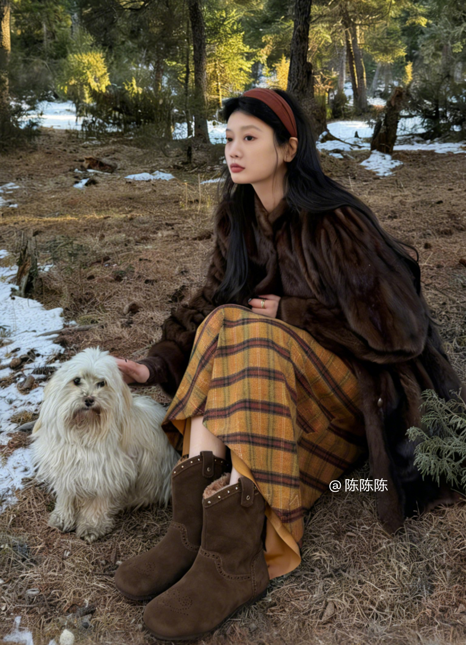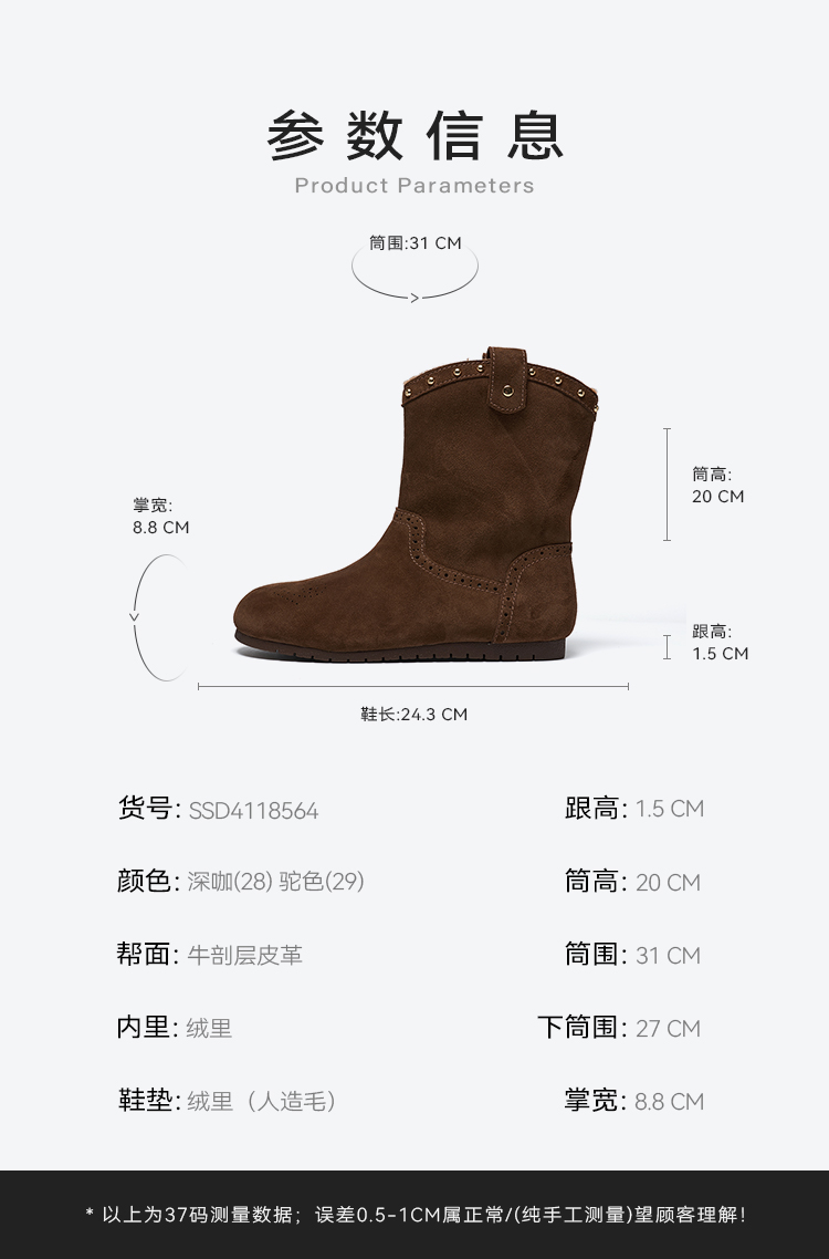 【泰迪系列】星期六复古铆钉巴洛克加绒堆堆靴SSD4118564