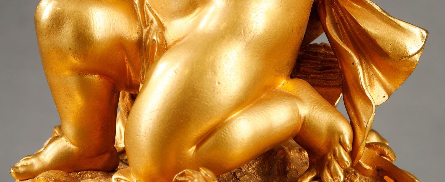 独角鹿西洋古董小天使丘比特主题铜鎏金雕饰巴卡拉水晶高脚果樽