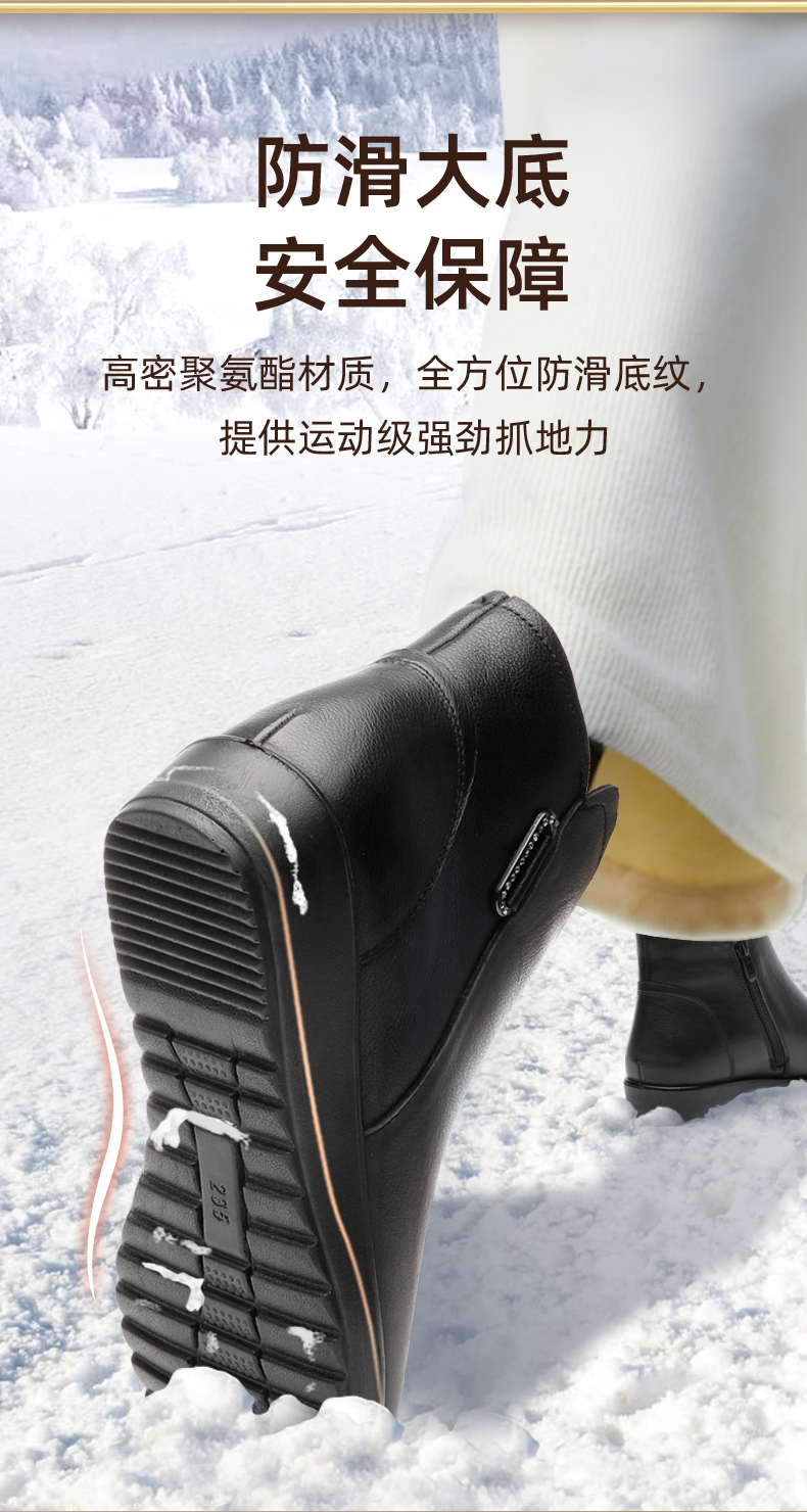 信诺妈妈棉鞋防滑软底加绒保暖中老年人大码皮鞋秋冬季真皮女皮靴20M630-22