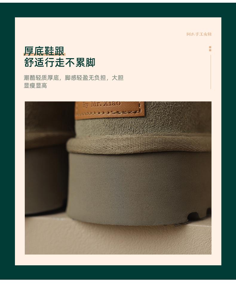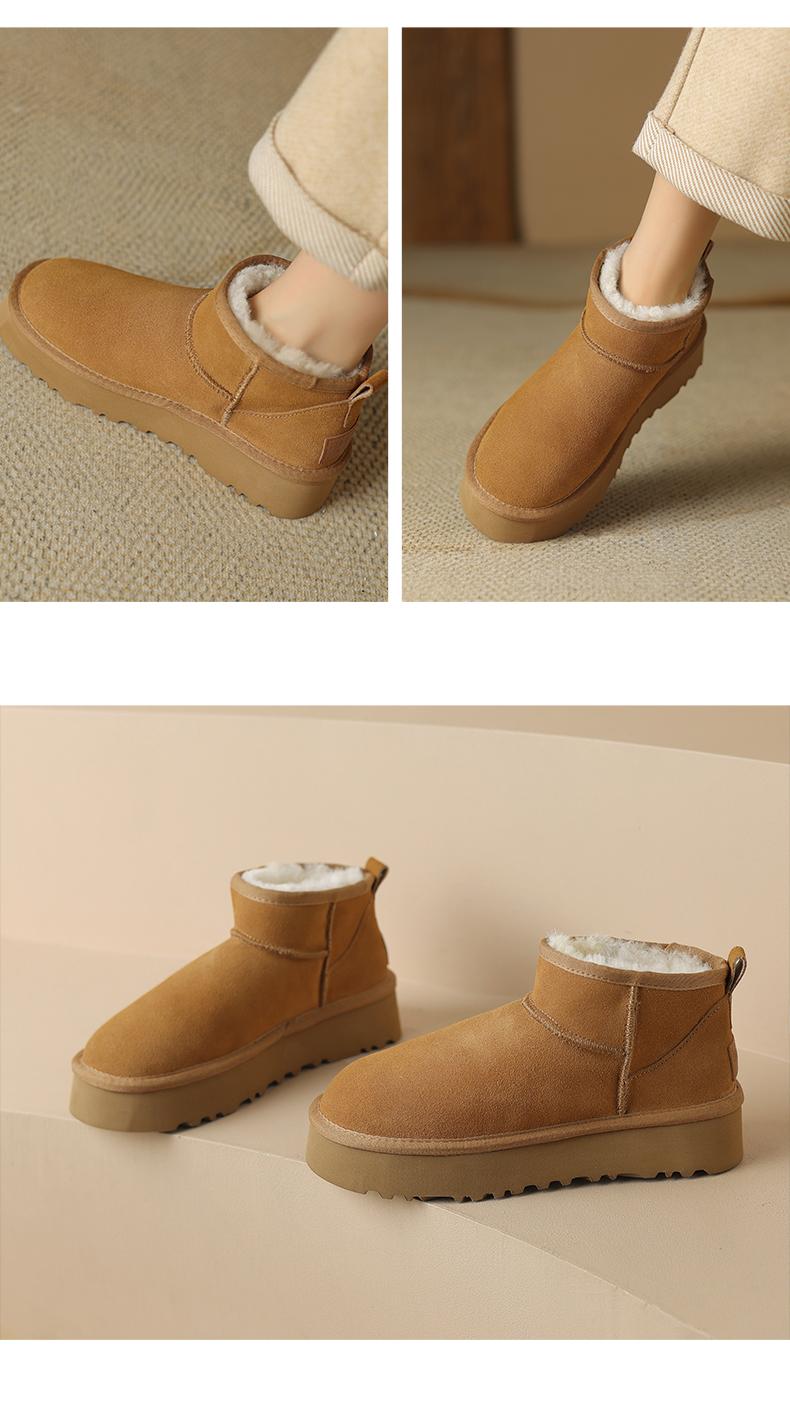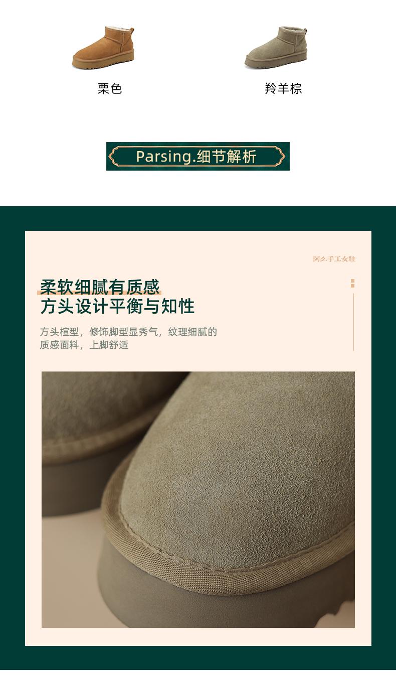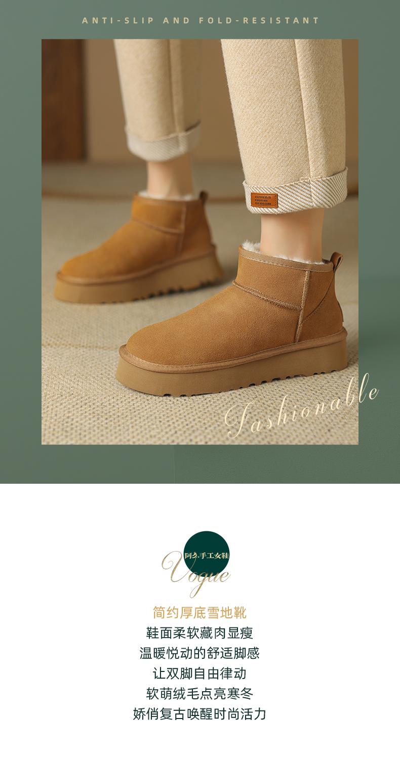 阿么手工女鞋真皮及踝雪地靴冬季保暖加绒2024新款一脚蹬厚底4CM