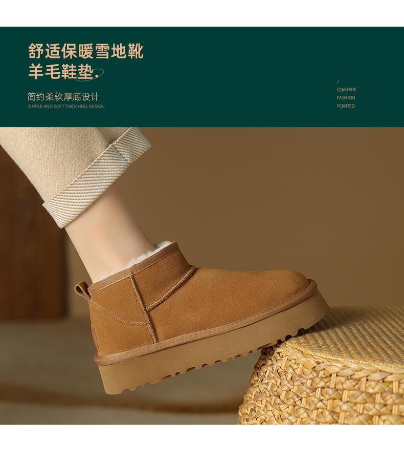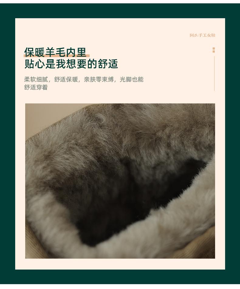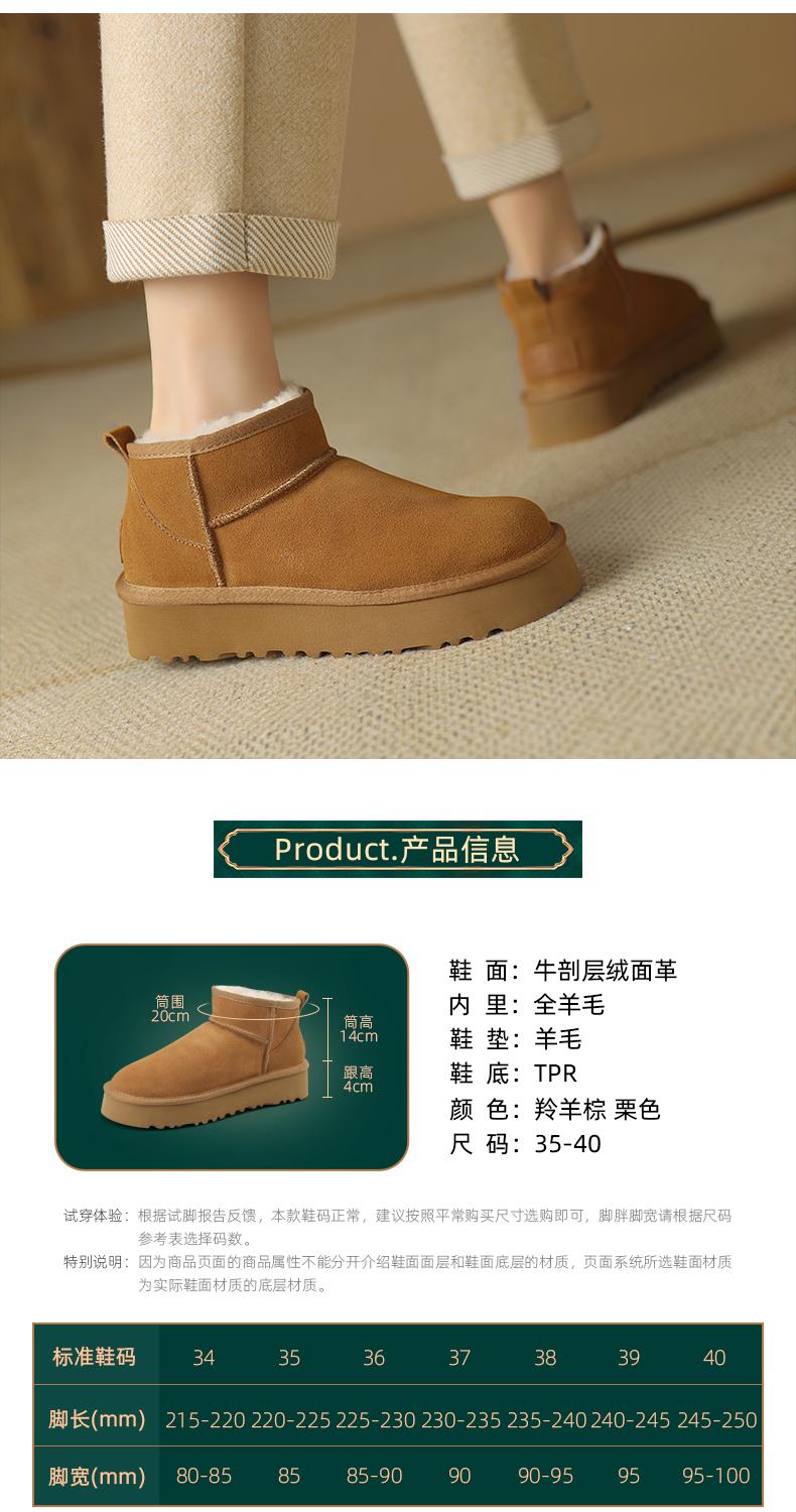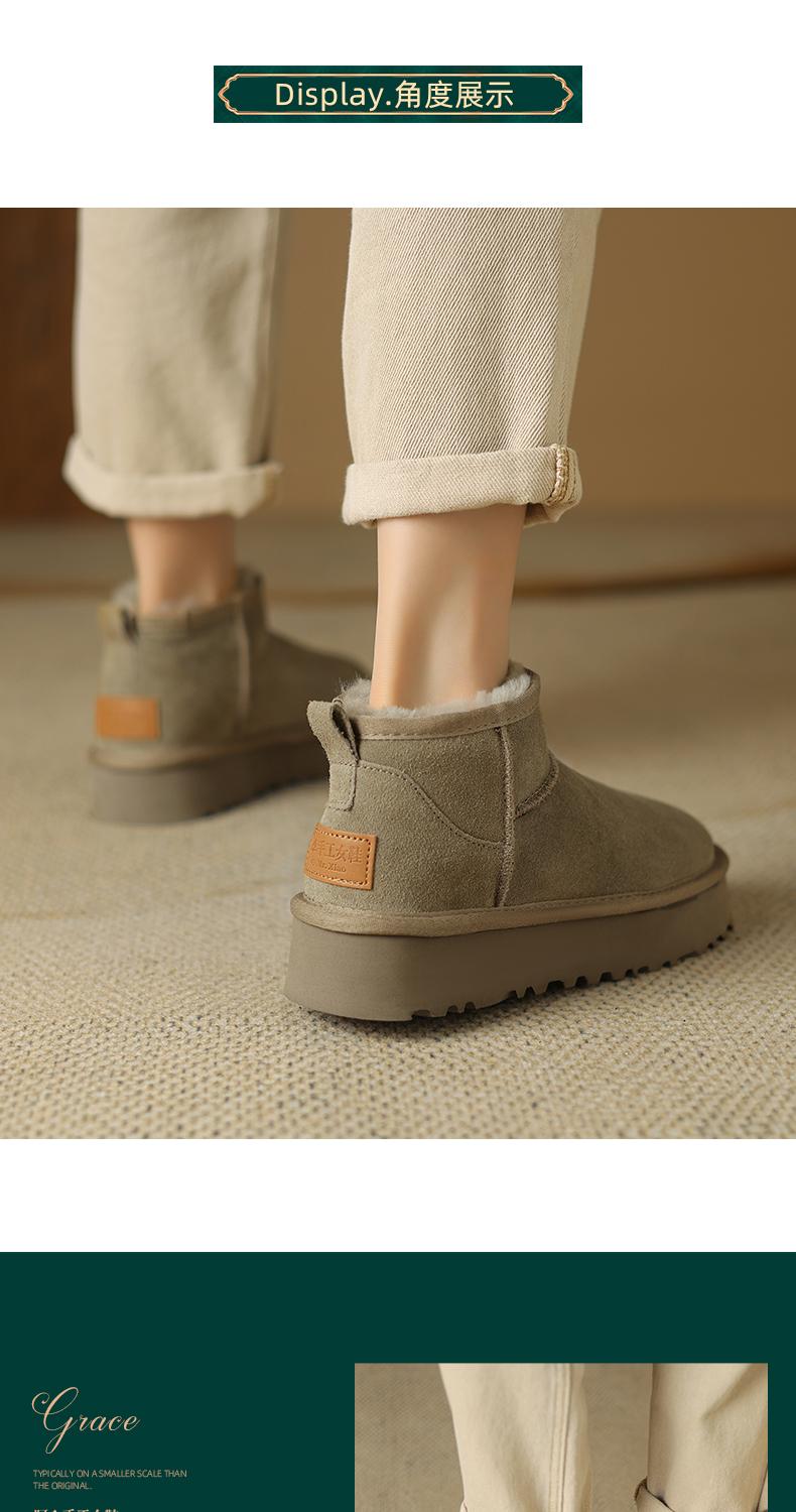 阿么手工女鞋真皮及踝雪地靴冬季保暖加绒2024新款一脚蹬厚底4CM