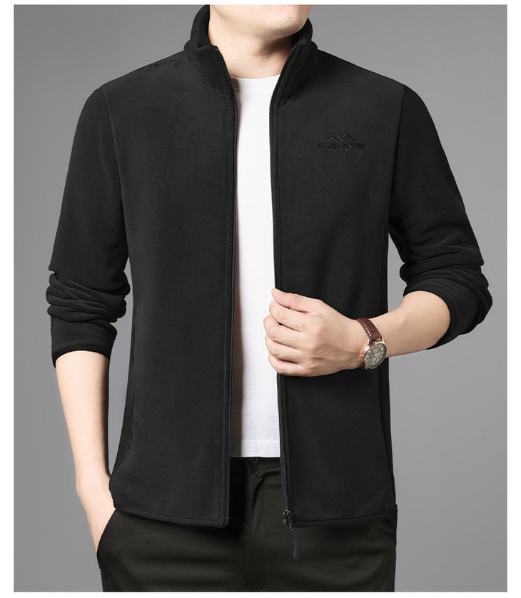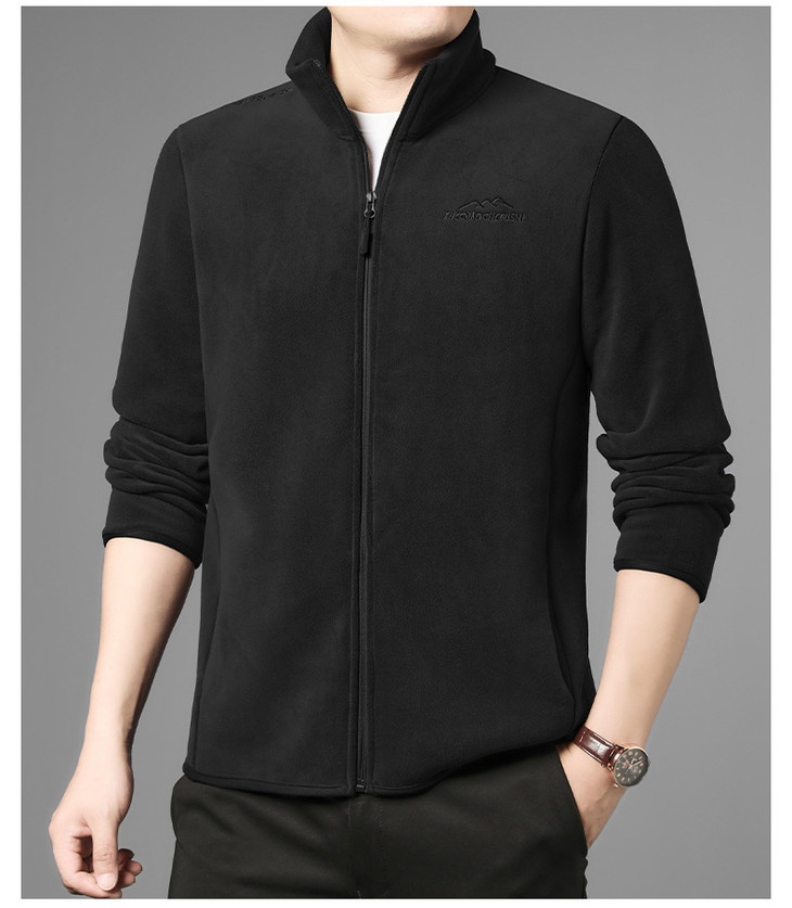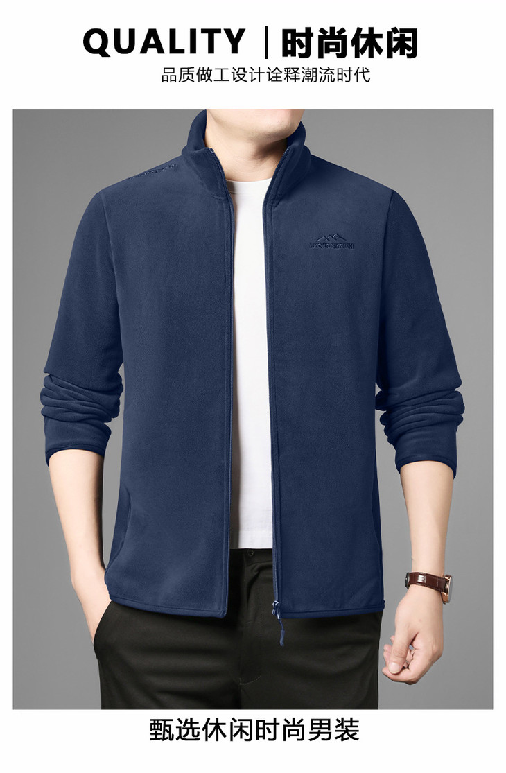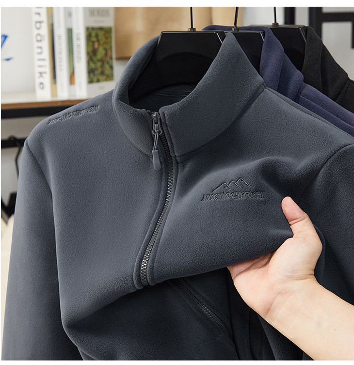 秋冬新款奥粒绒男士立领开衫加绒休闲卫衣外套加厚保暖摇粒绒夹克