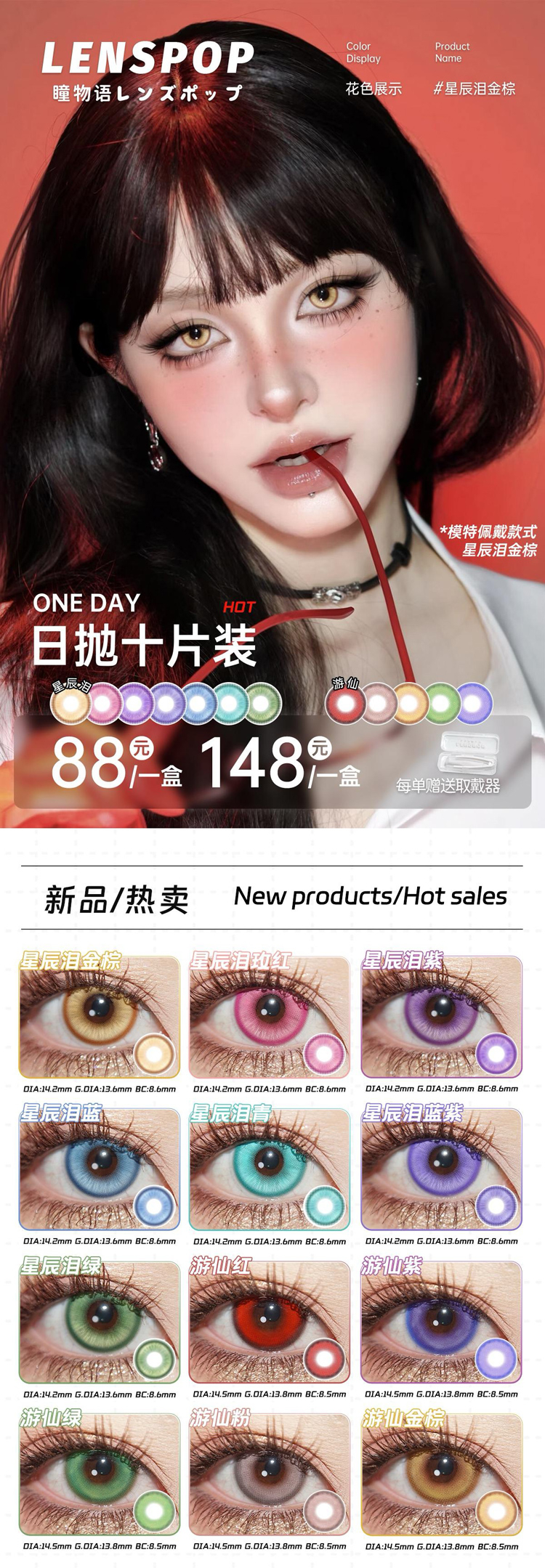 LENSPOP 日抛 活动合集【星辰泪紫/星辰泪绿/星辰泪蓝/星辰泪青/星辰泪蓝紫/星辰泪金棕/星辰泪玫红/游仙金棕/游仙红/游仙绿/游仙紫/游仙粉】cos