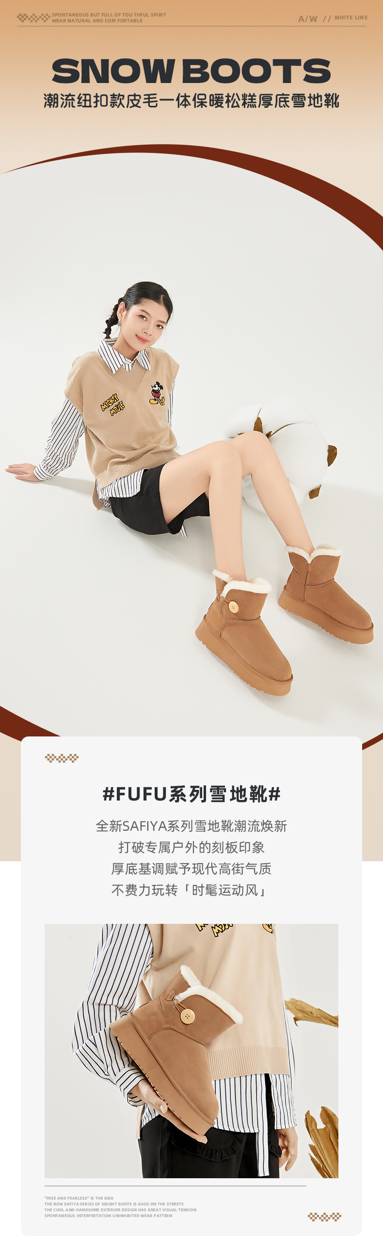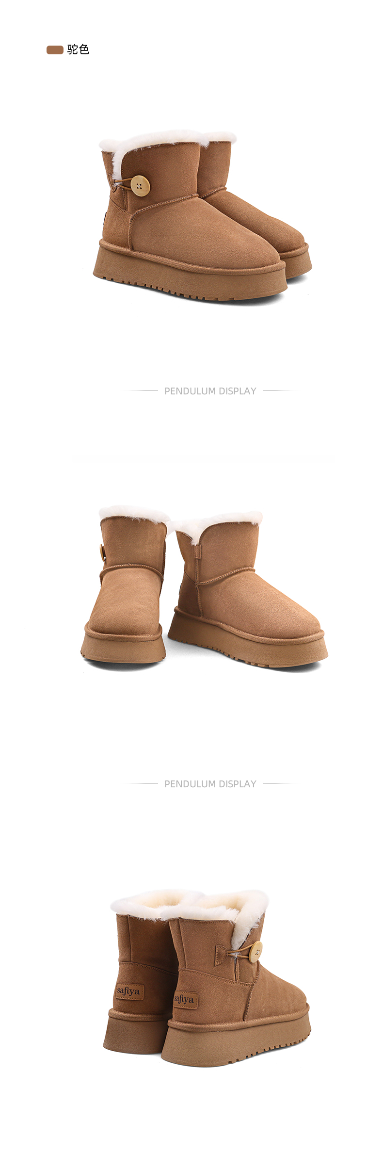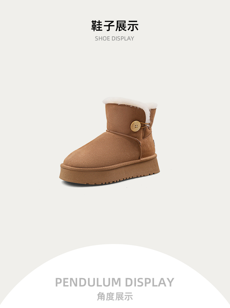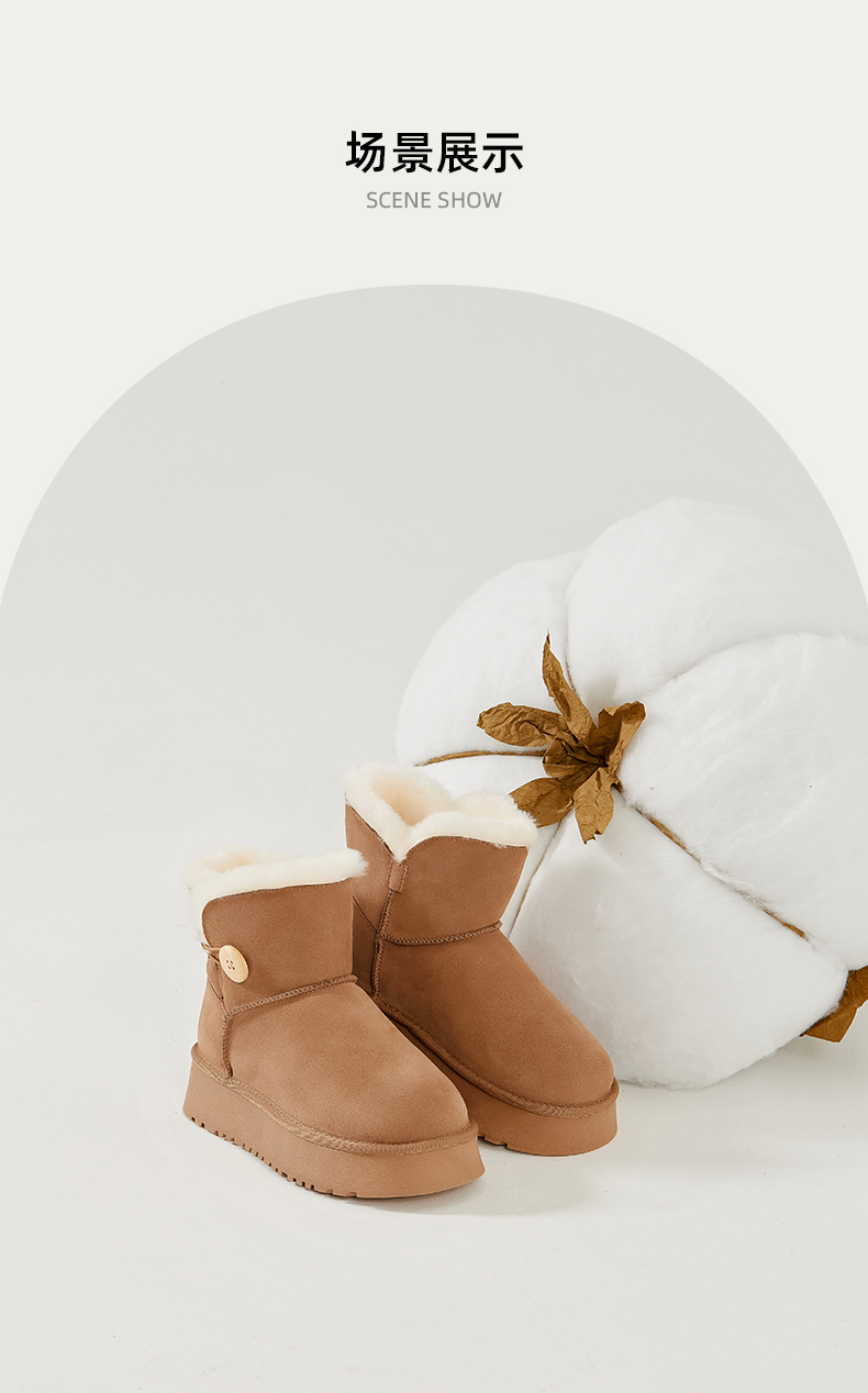 Safiya/索菲娅2023秋冬潮流纽扣款皮毛一体保暖松糕厚底雪地靴 SF3411A121