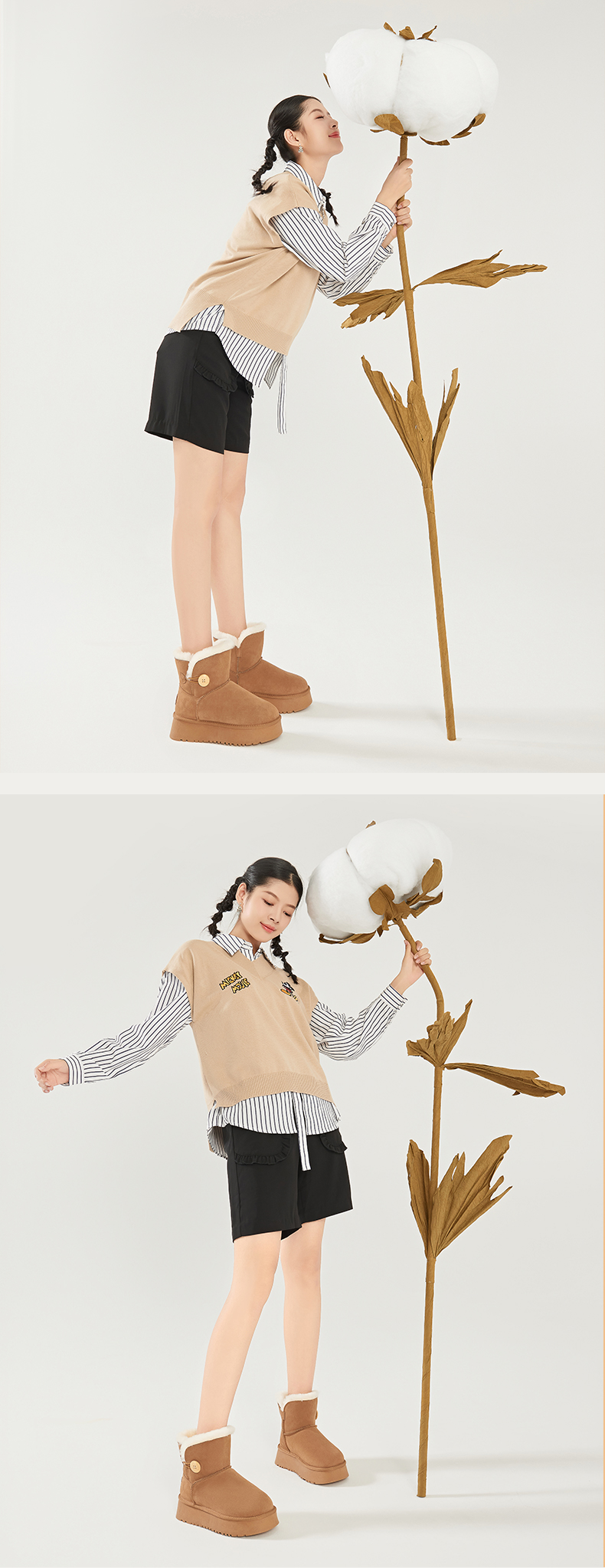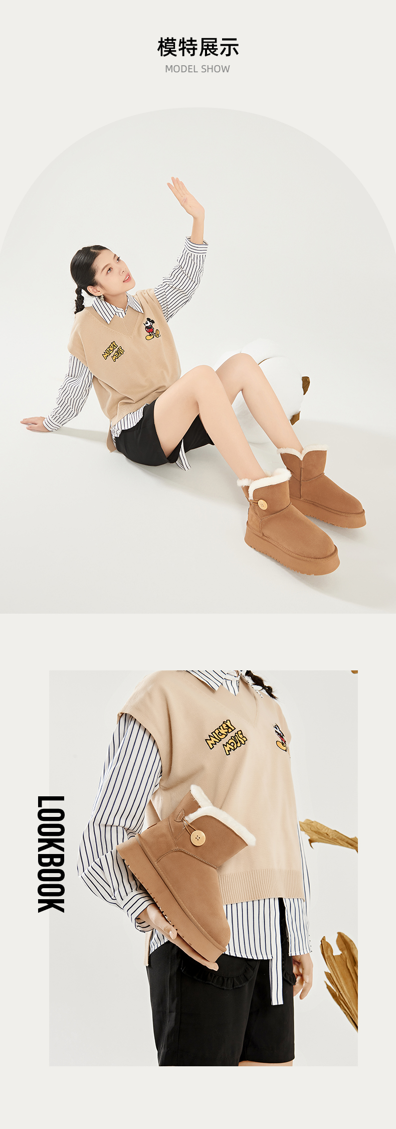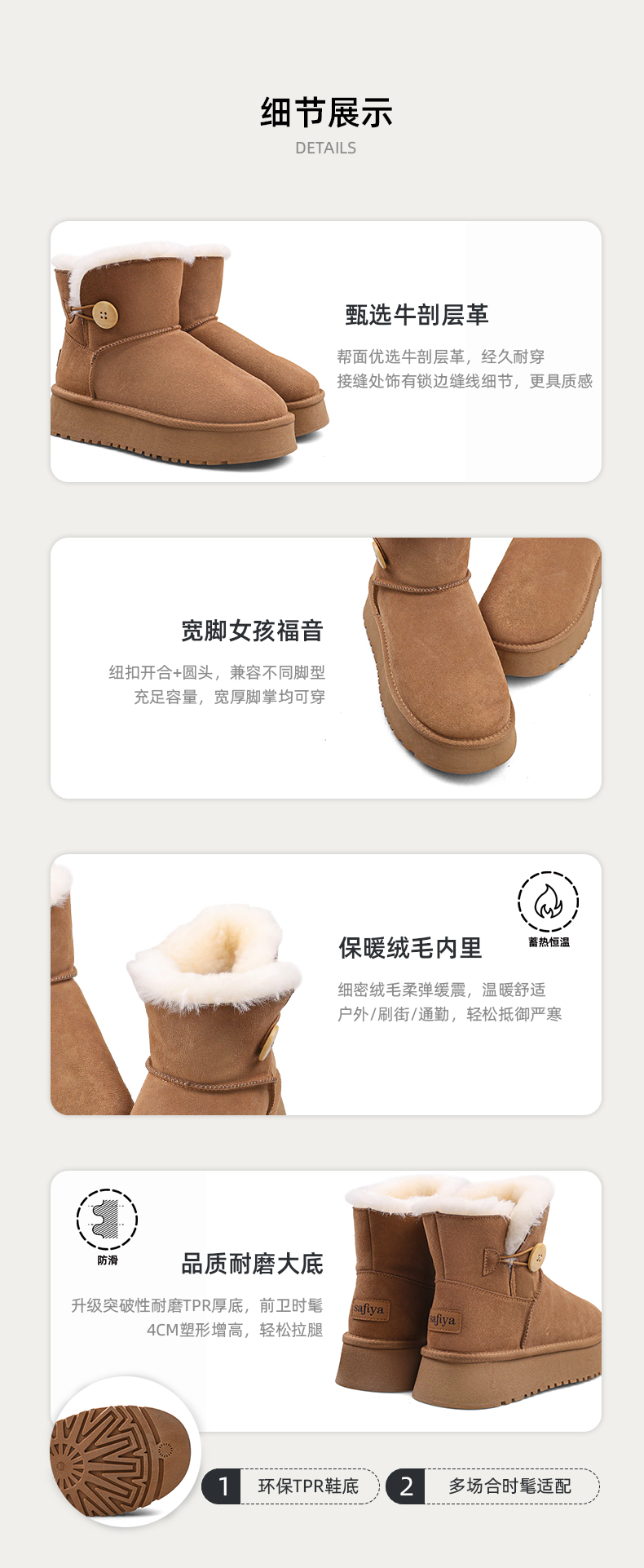 Safiya/索菲娅2023秋冬潮流纽扣款皮毛一体保暖松糕厚底雪地靴 SF3411A121