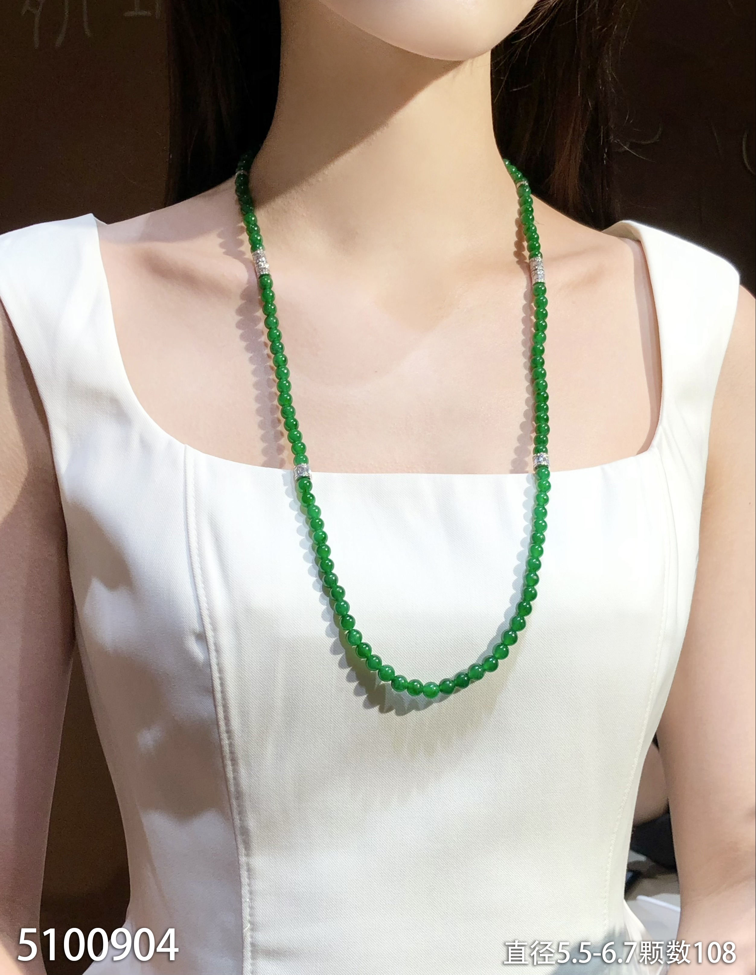 108颗老坑艳绿珠链【5100904】具体价格微信咨询