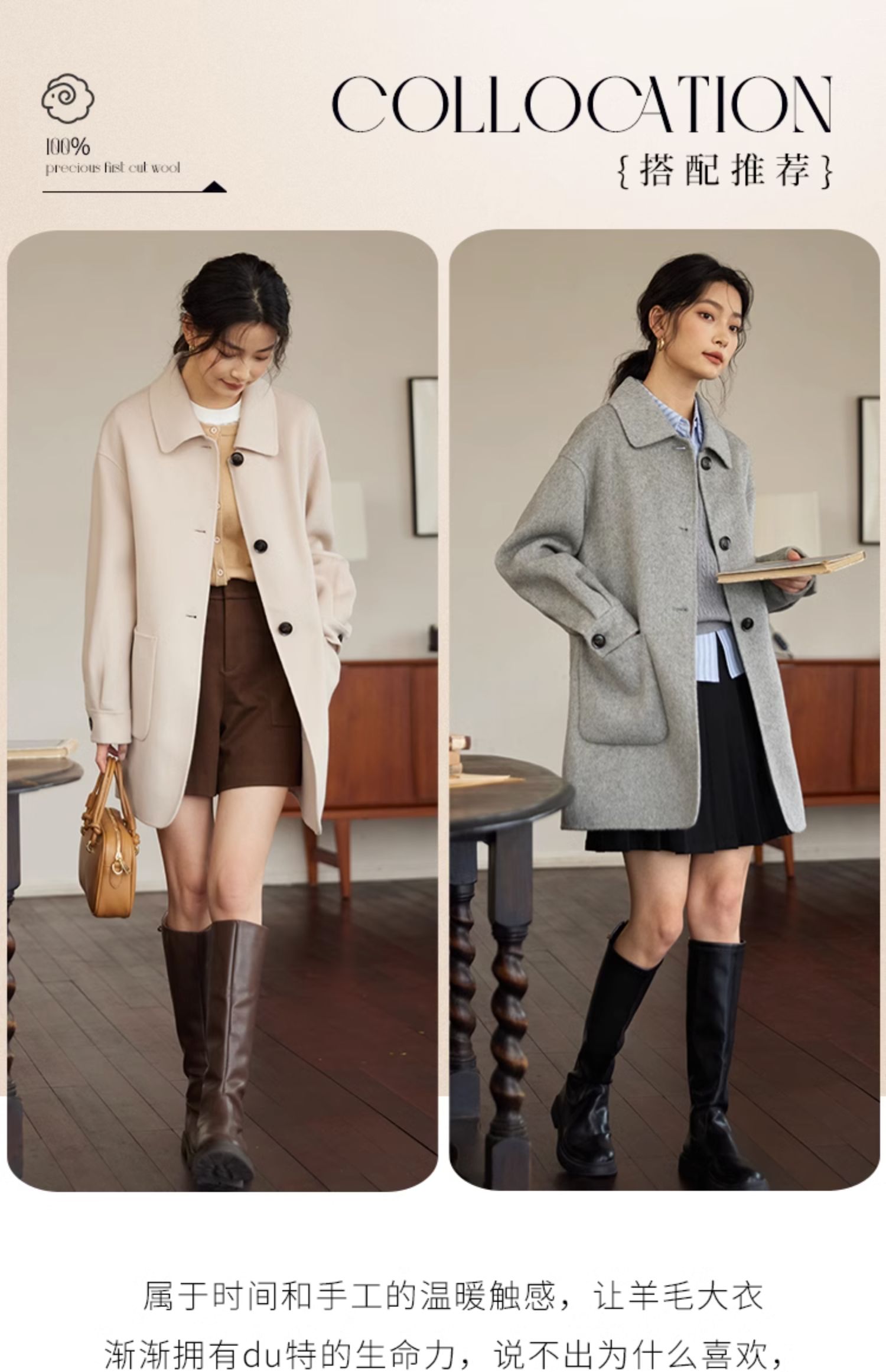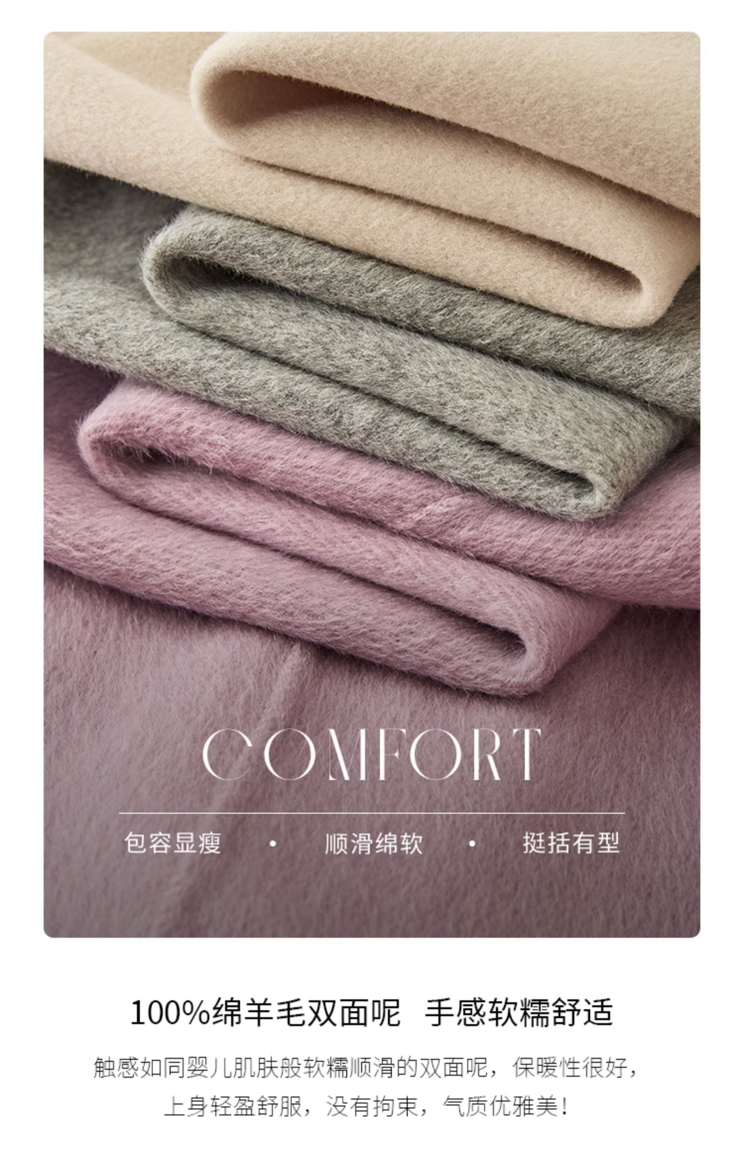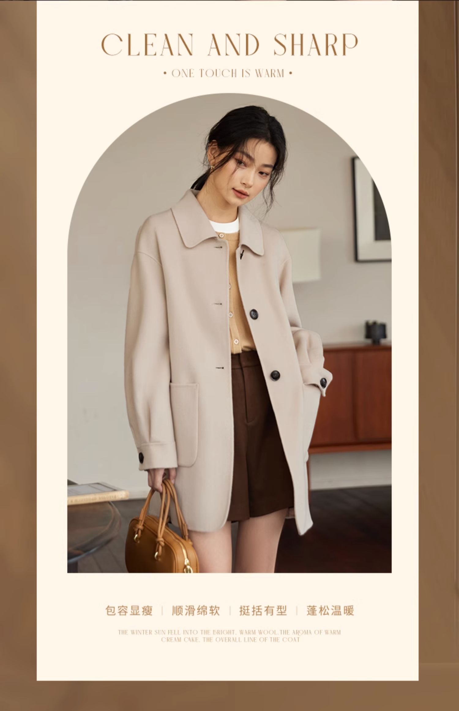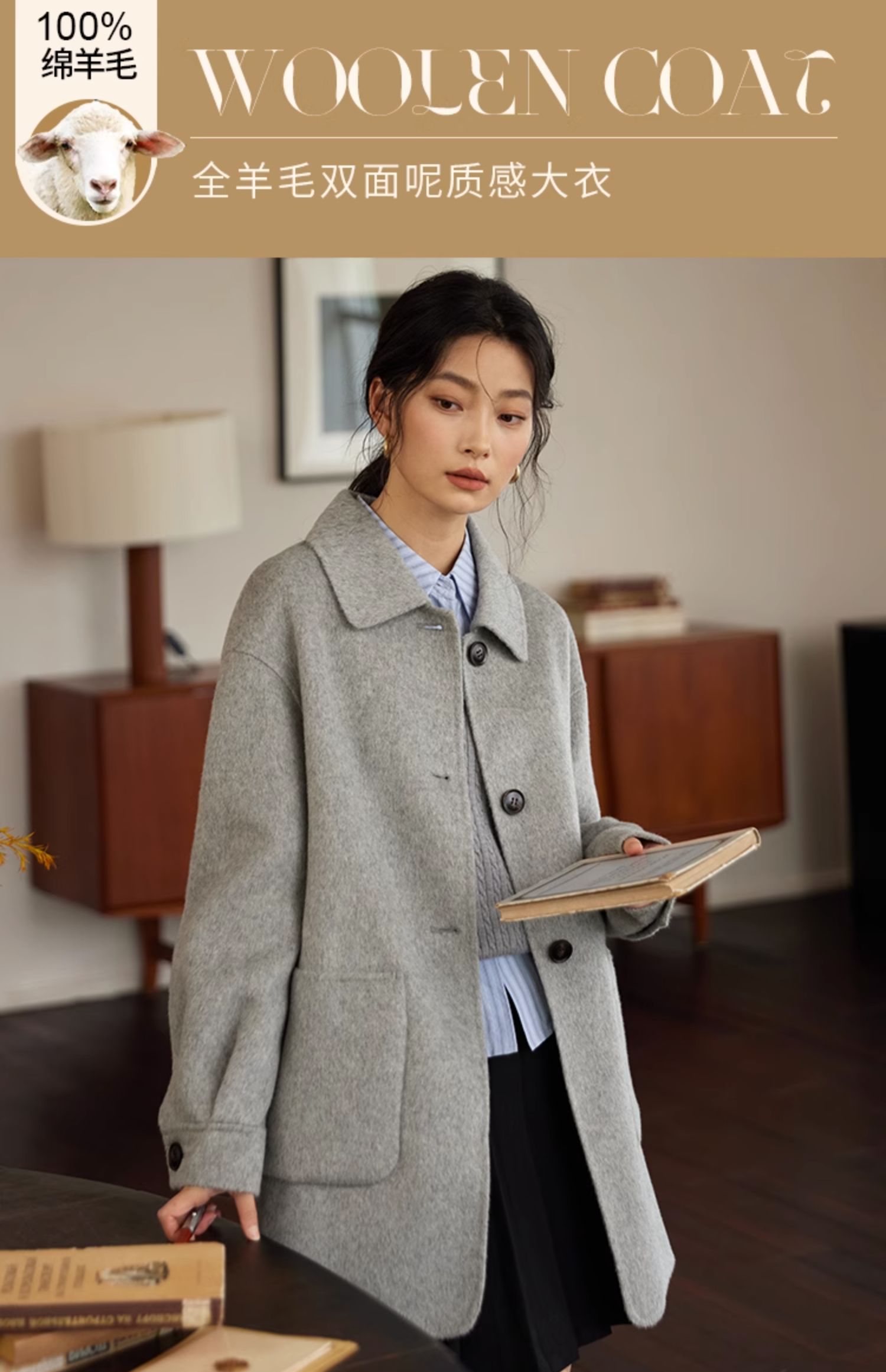 【1件72折】熙世界70支100高端绵羊毛双面呢大衣2025秋冬款小个子毛呢外套