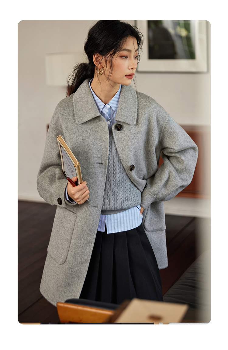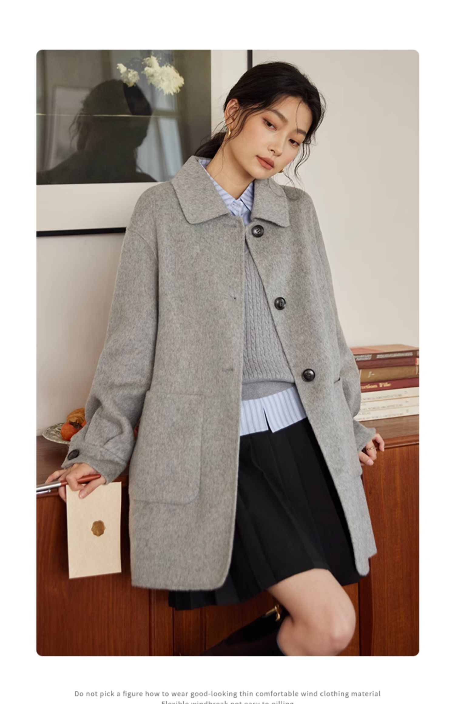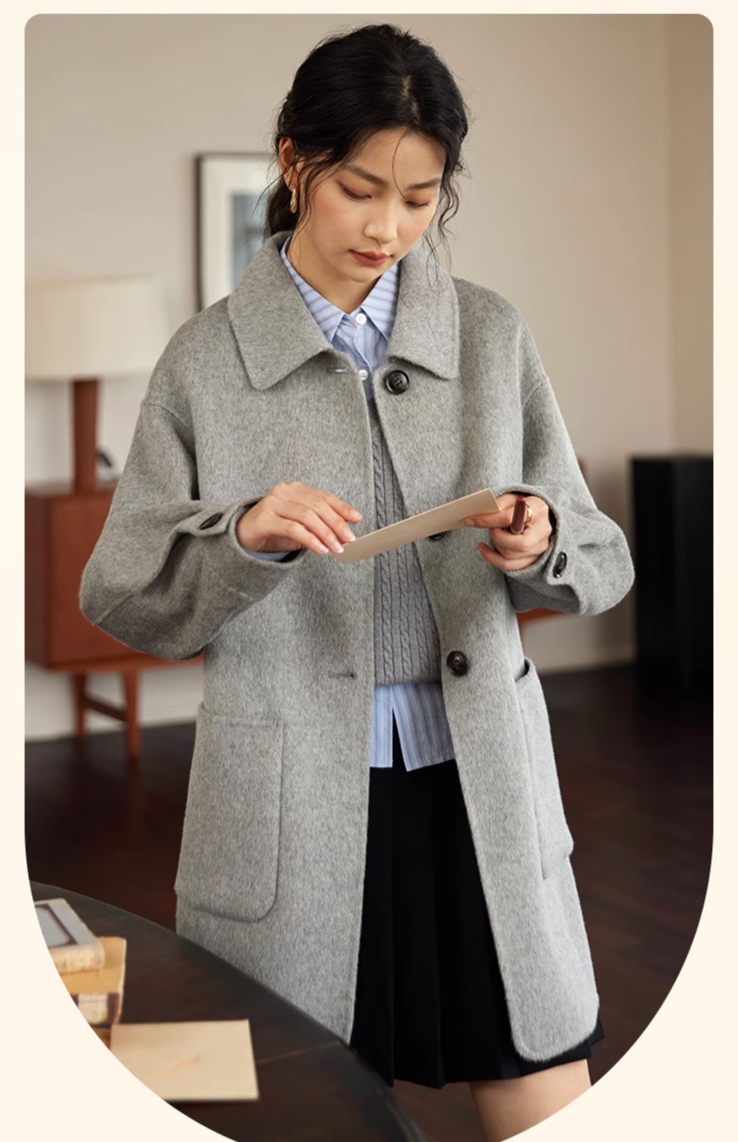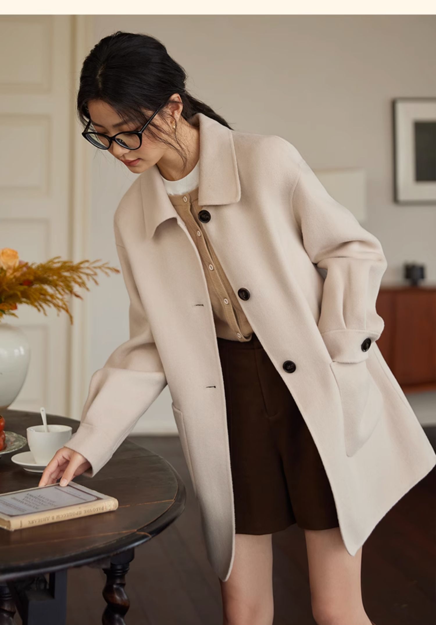 【1件72折】熙世界70支100高端绵羊毛双面呢大衣2025秋冬款小个子毛呢外套