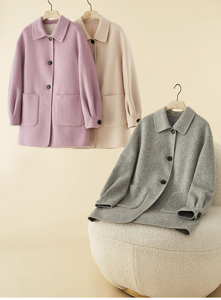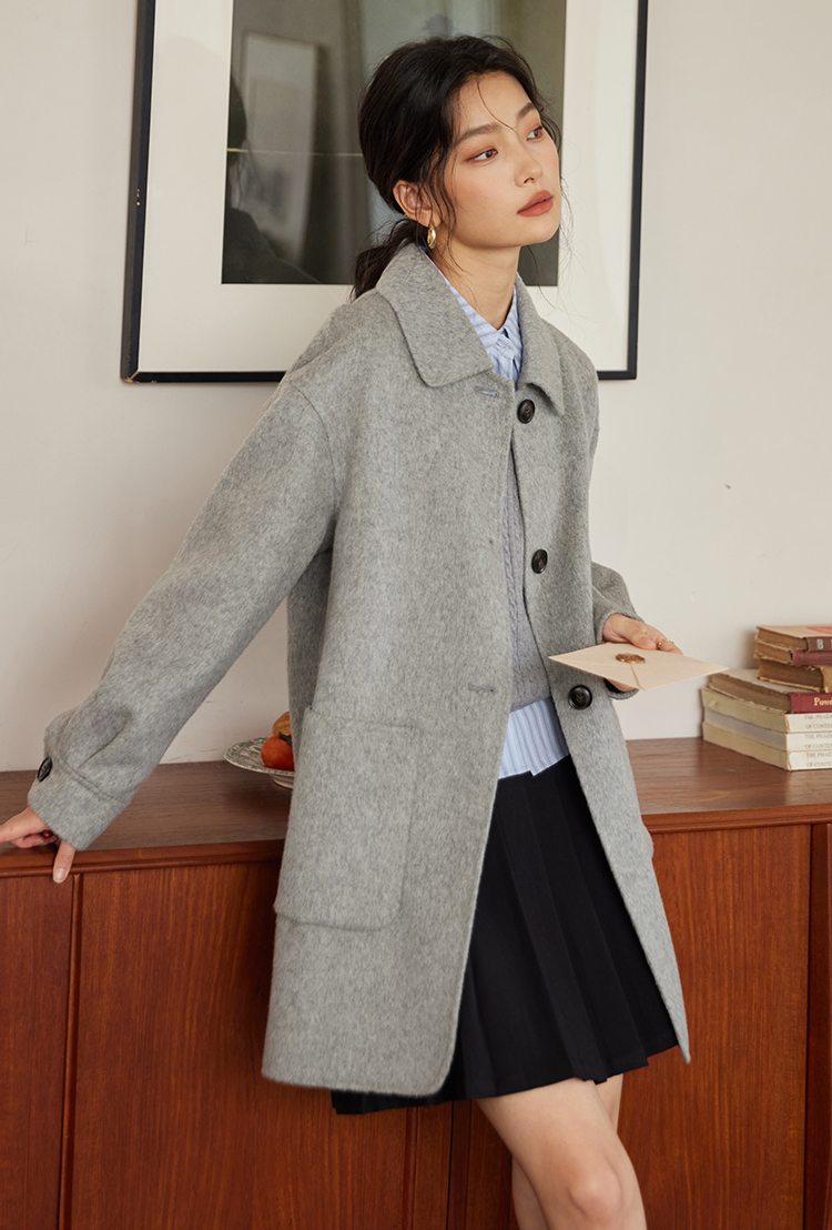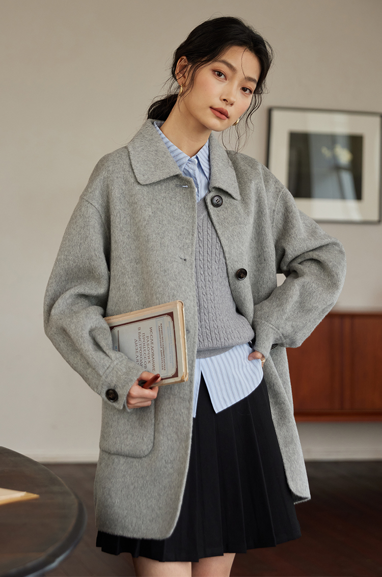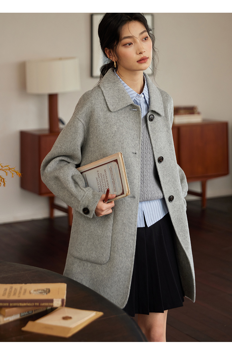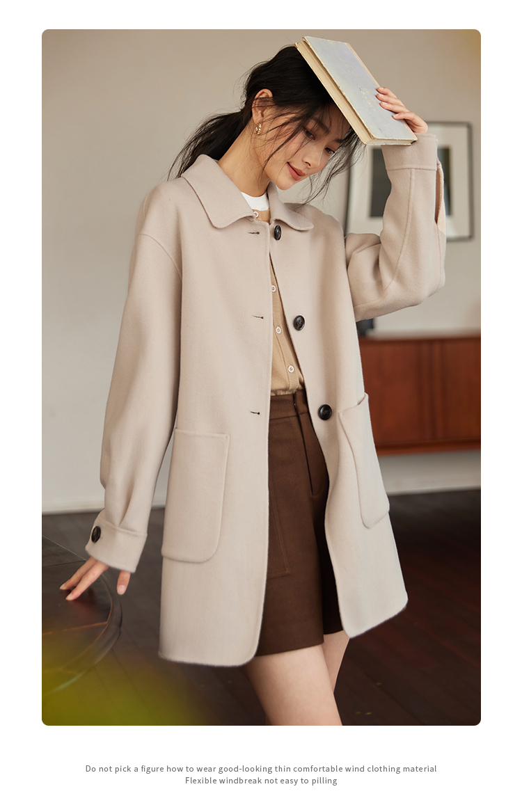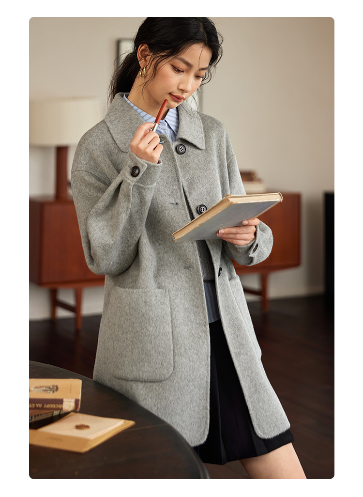【1件72折】熙世界70支100高端绵羊毛双面呢大衣2025秋冬款小个子毛呢外套