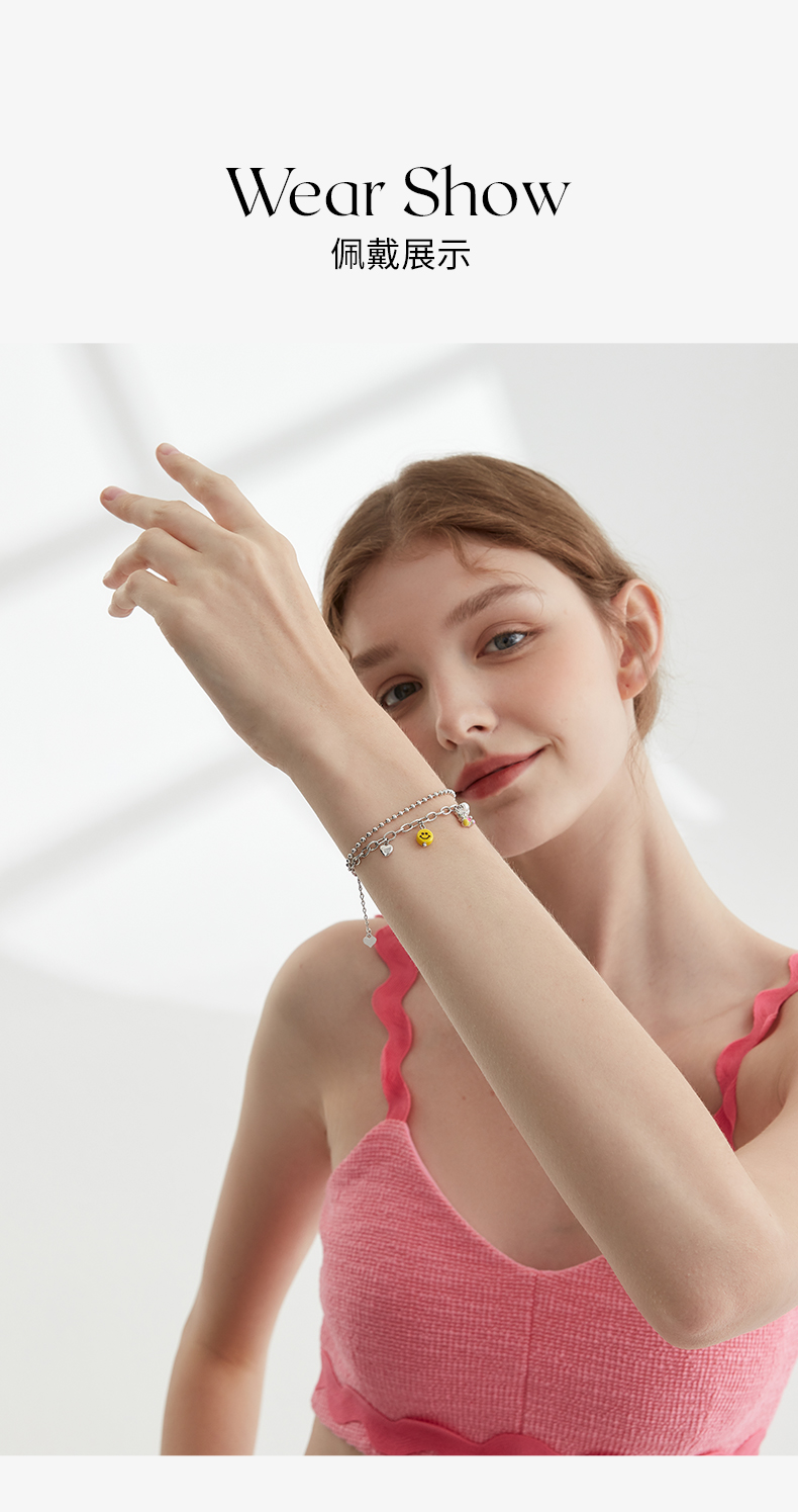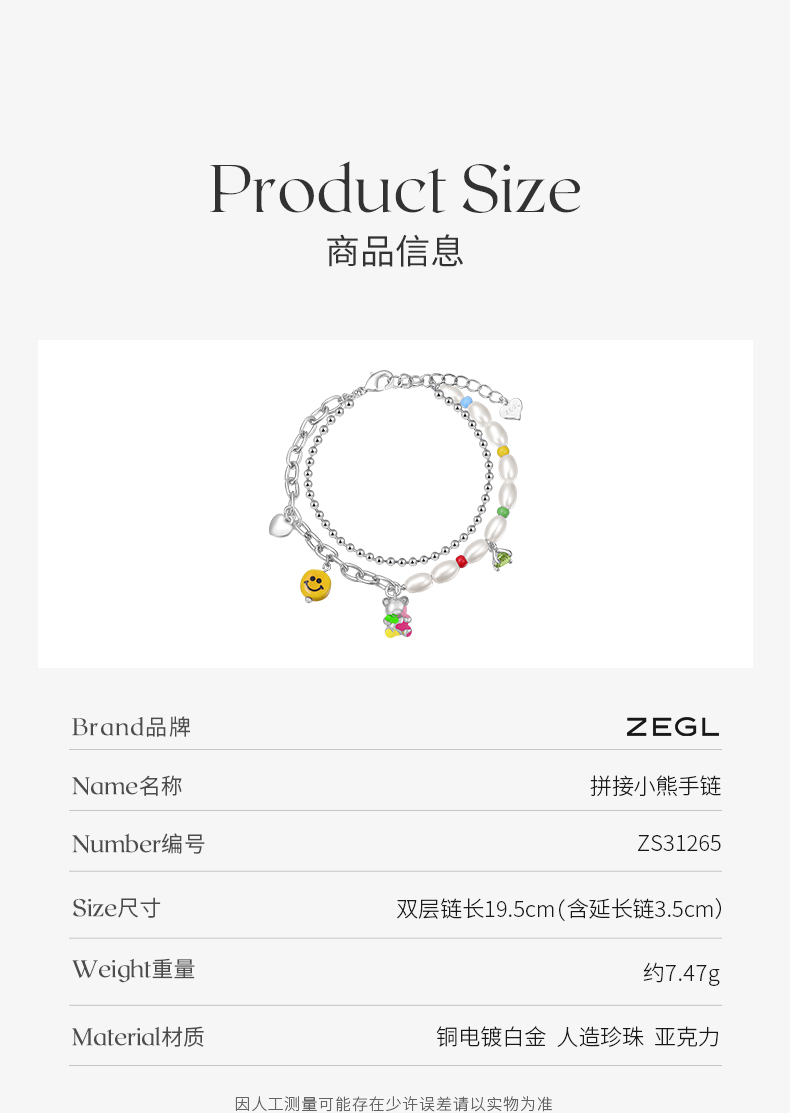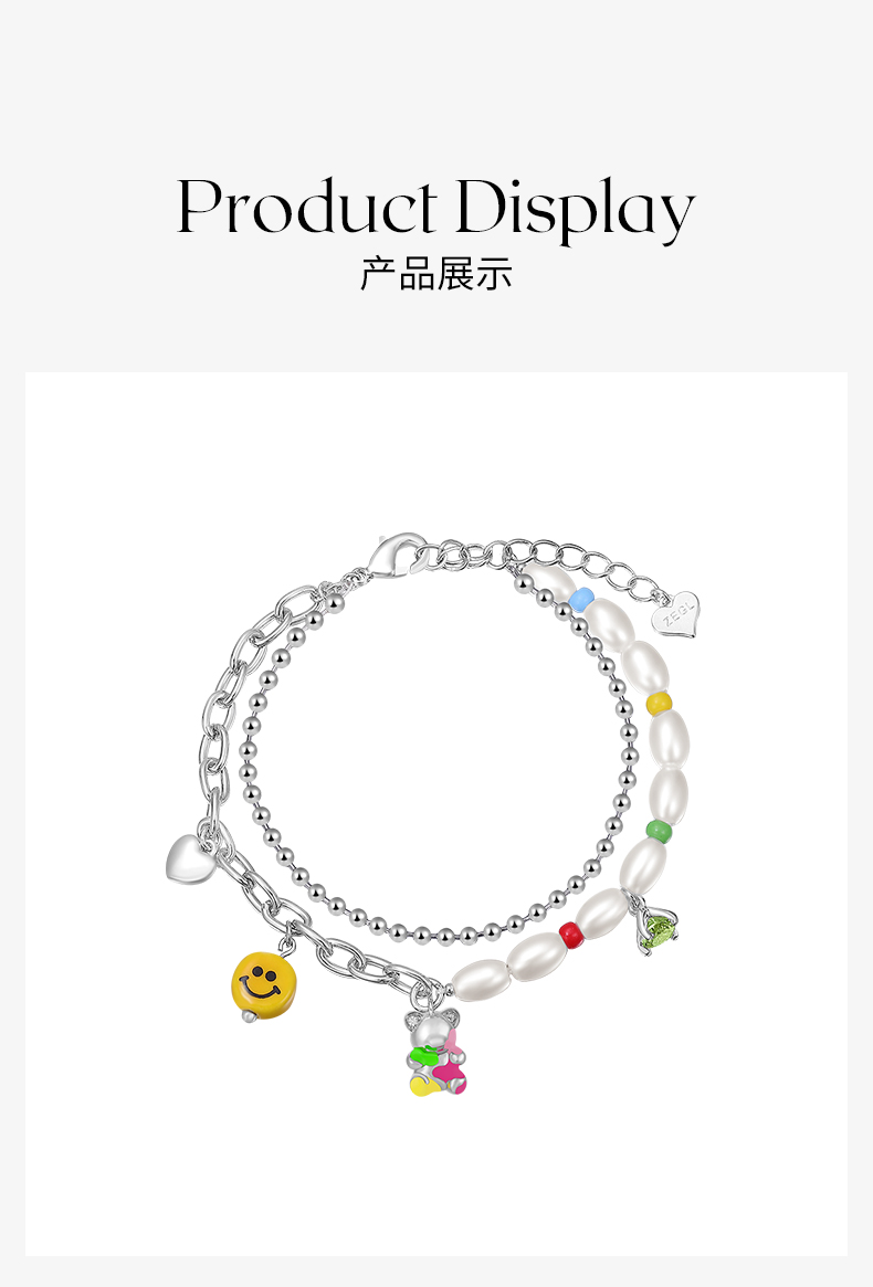 ZEGL设计师彩虹笑脸串珠手链女夏彩色双层高级感人造珍珠小熊多巴胺穿搭手饰