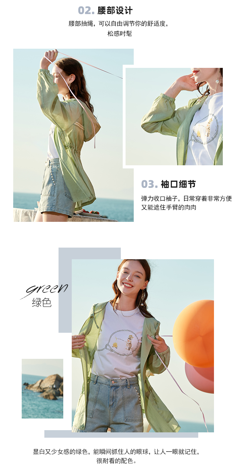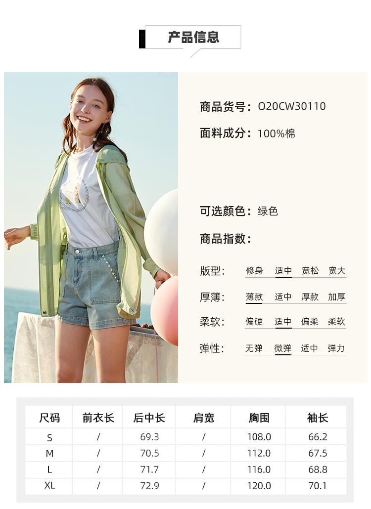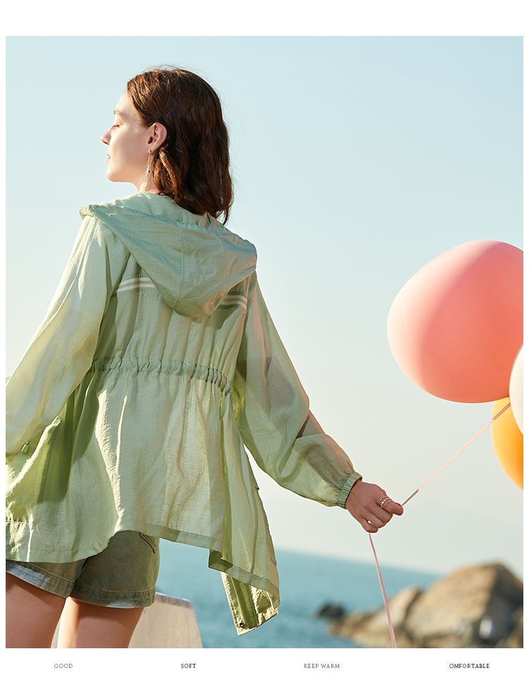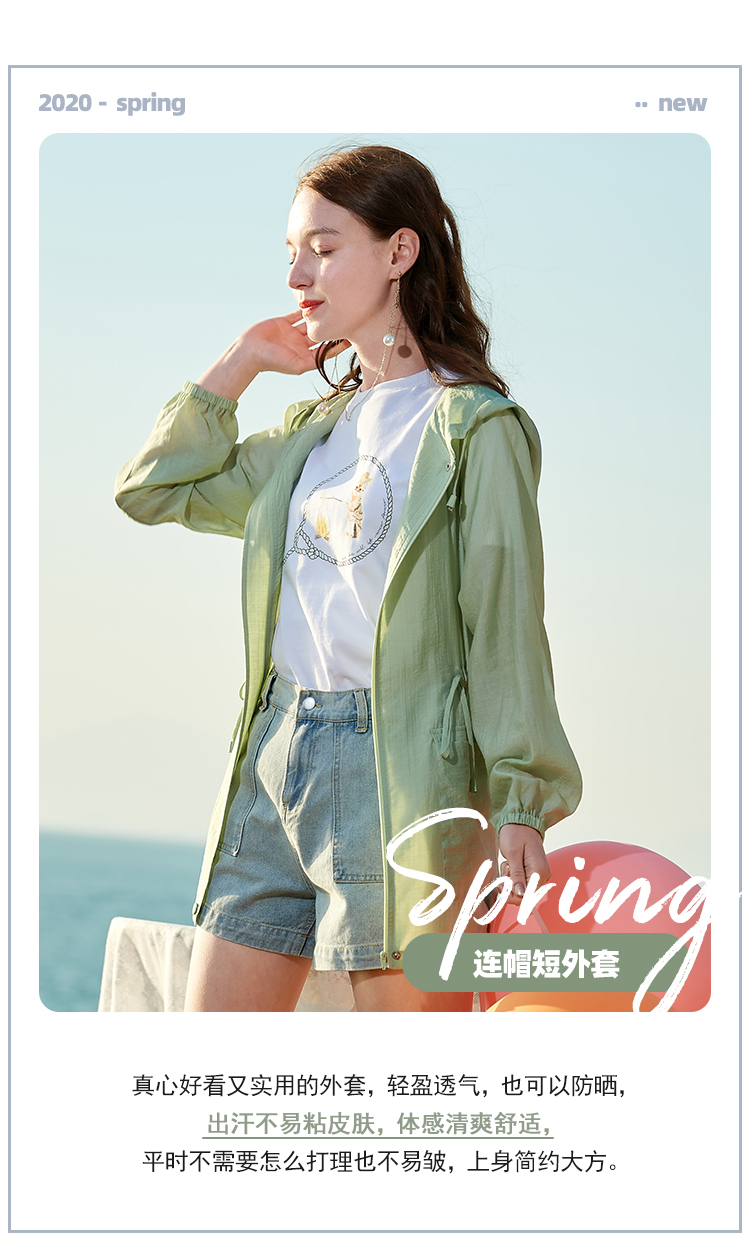欧芮儿新款长袖连帽外套女绿色防晒衫宽松显瘦百搭上衣
