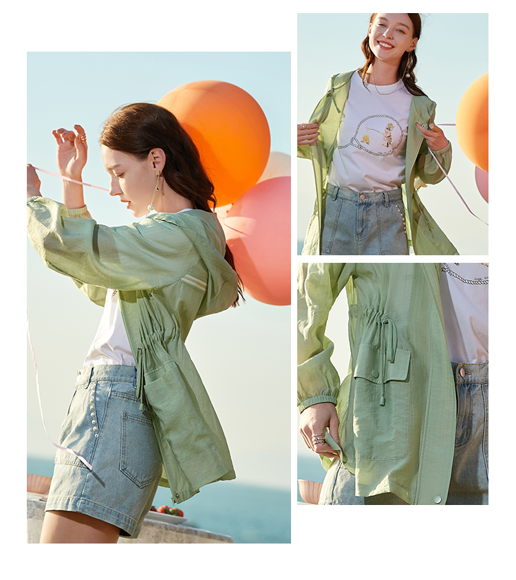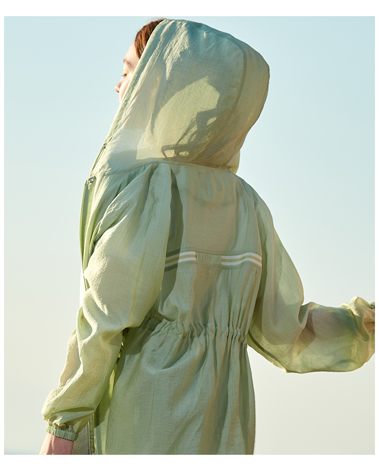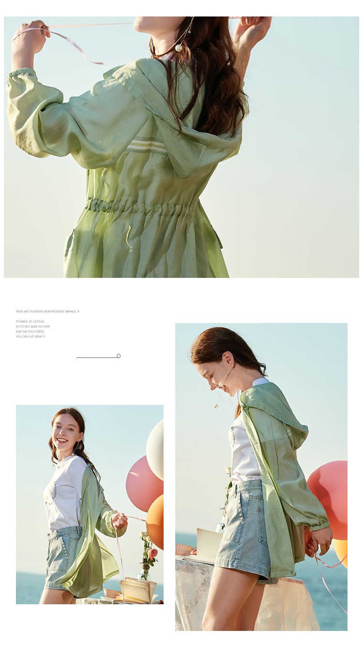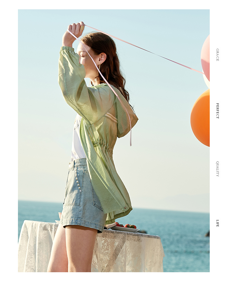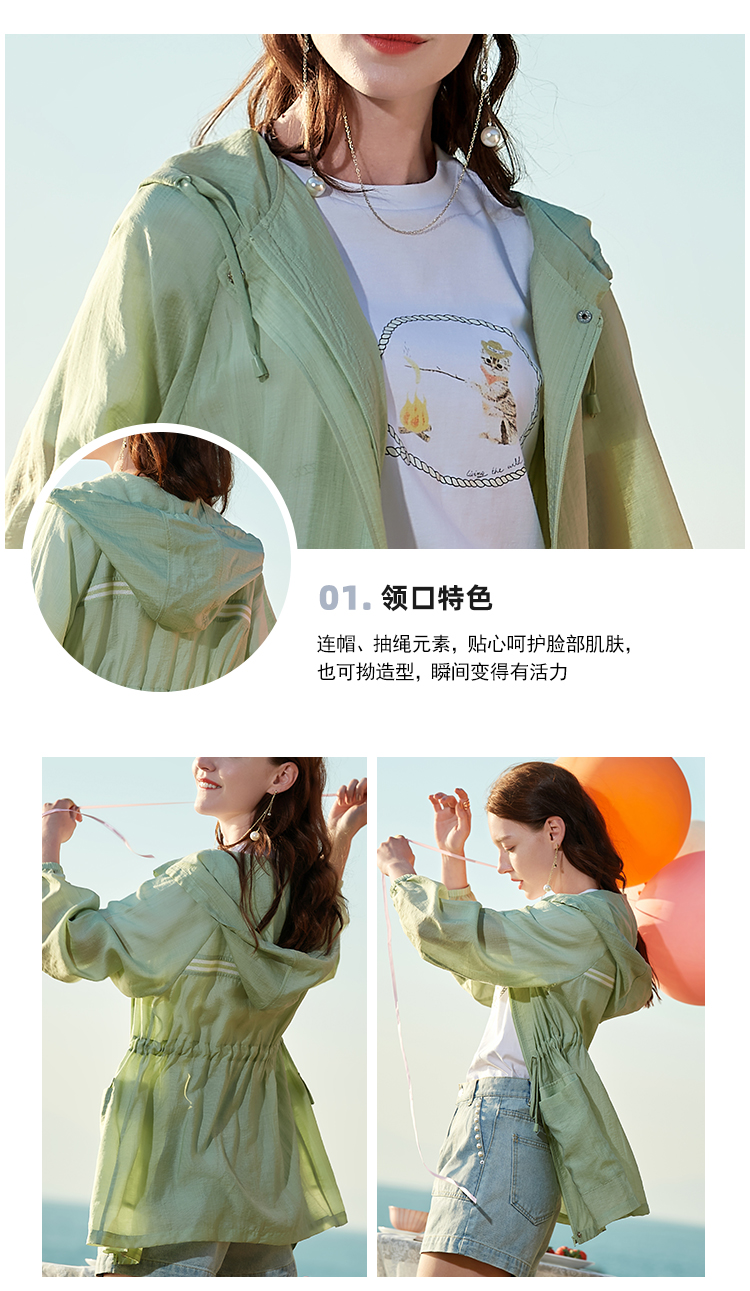 欧芮儿新款长袖连帽外套女绿色防晒衫宽松显瘦百搭上衣