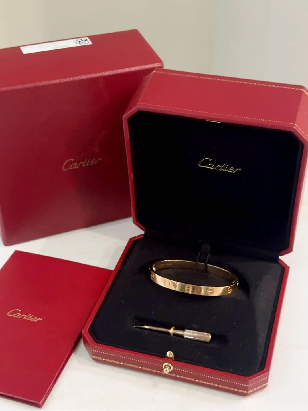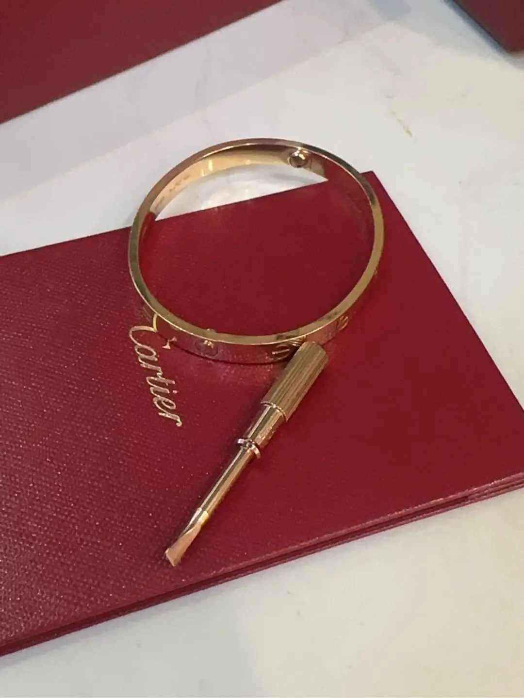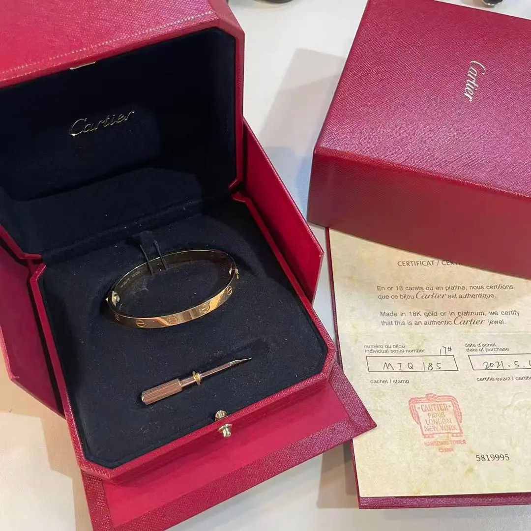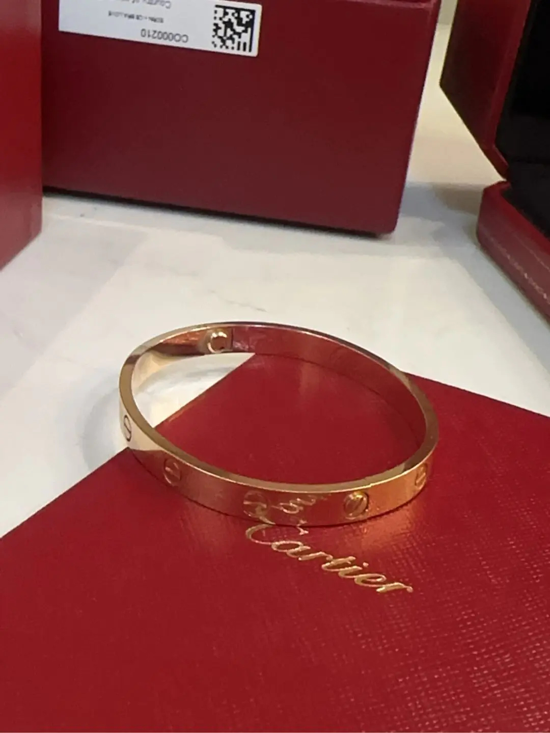 正品二手 卡地亚 love系列 无钻 18k玫瑰金 宽版 手镯🍬 95新 17号 配件:保修卡 调节器 内盒 外盒。手镯表面正常使用划痕。戴在手上真的很好看