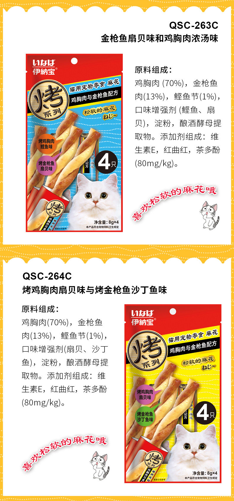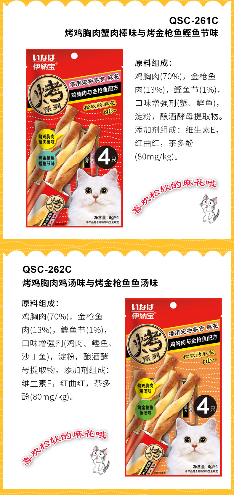 伊纳宝妙好猫麻花猫饼干16支海鲜猫肉干猫咪零食幼猫磨牙洁齿