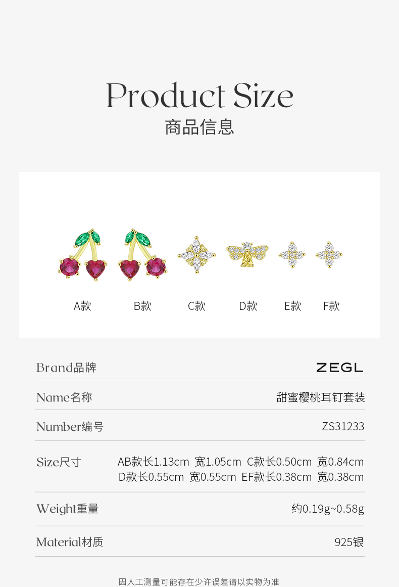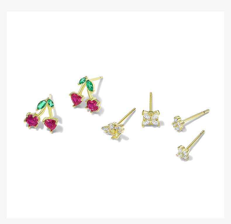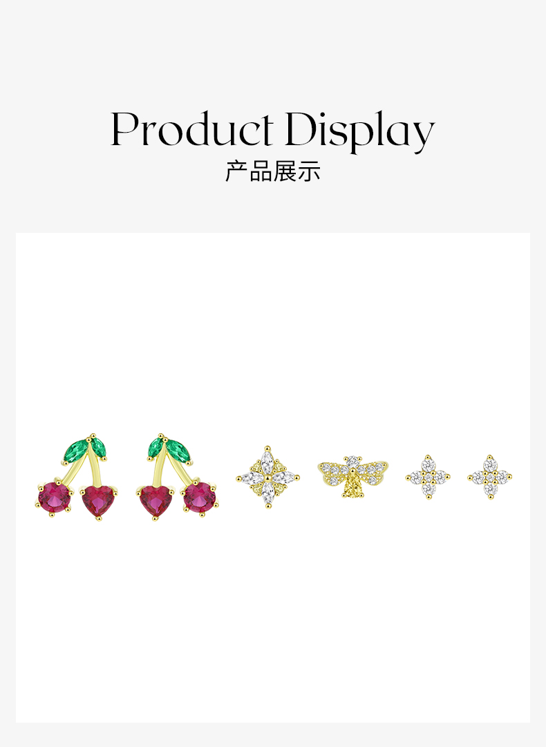 ZEGL设计师925纯银樱桃蜜蜂耳钉女小众设计感花朵耳环夏天耳饰品