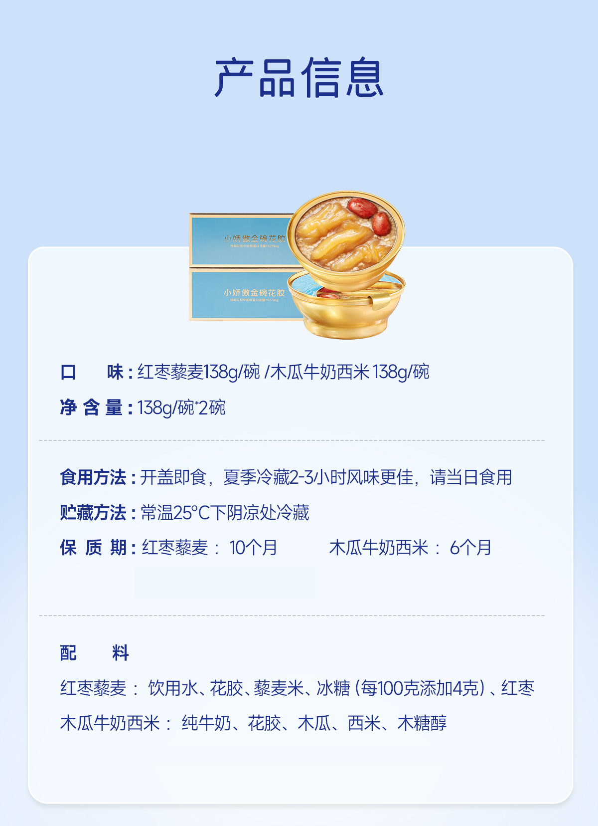 极盏小娇傲即食金碗花胶138g*2(红枣藜麦+牛奶木瓜西米)