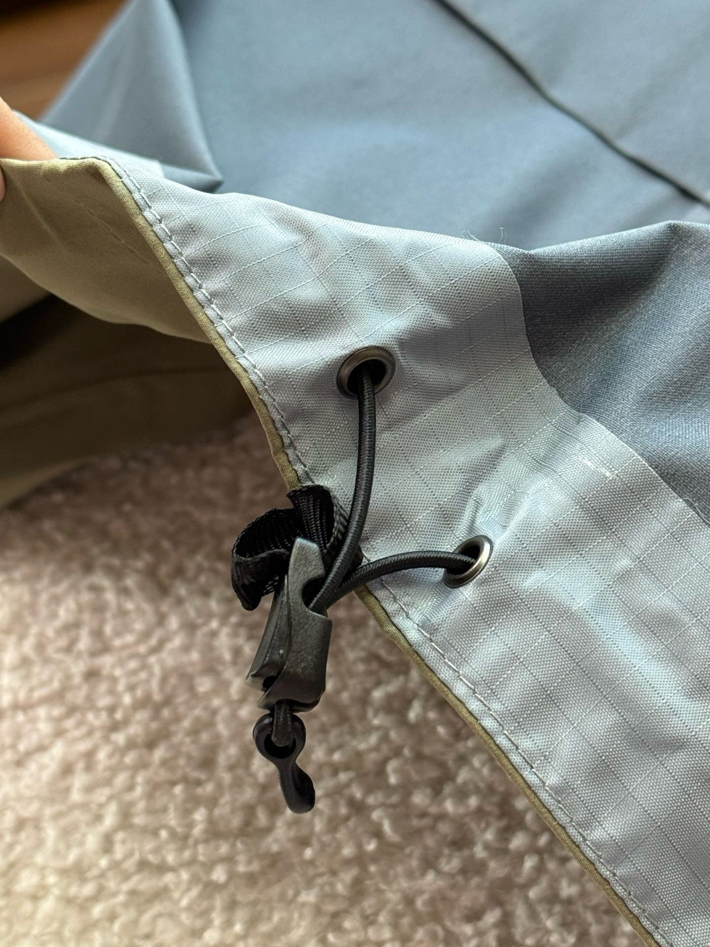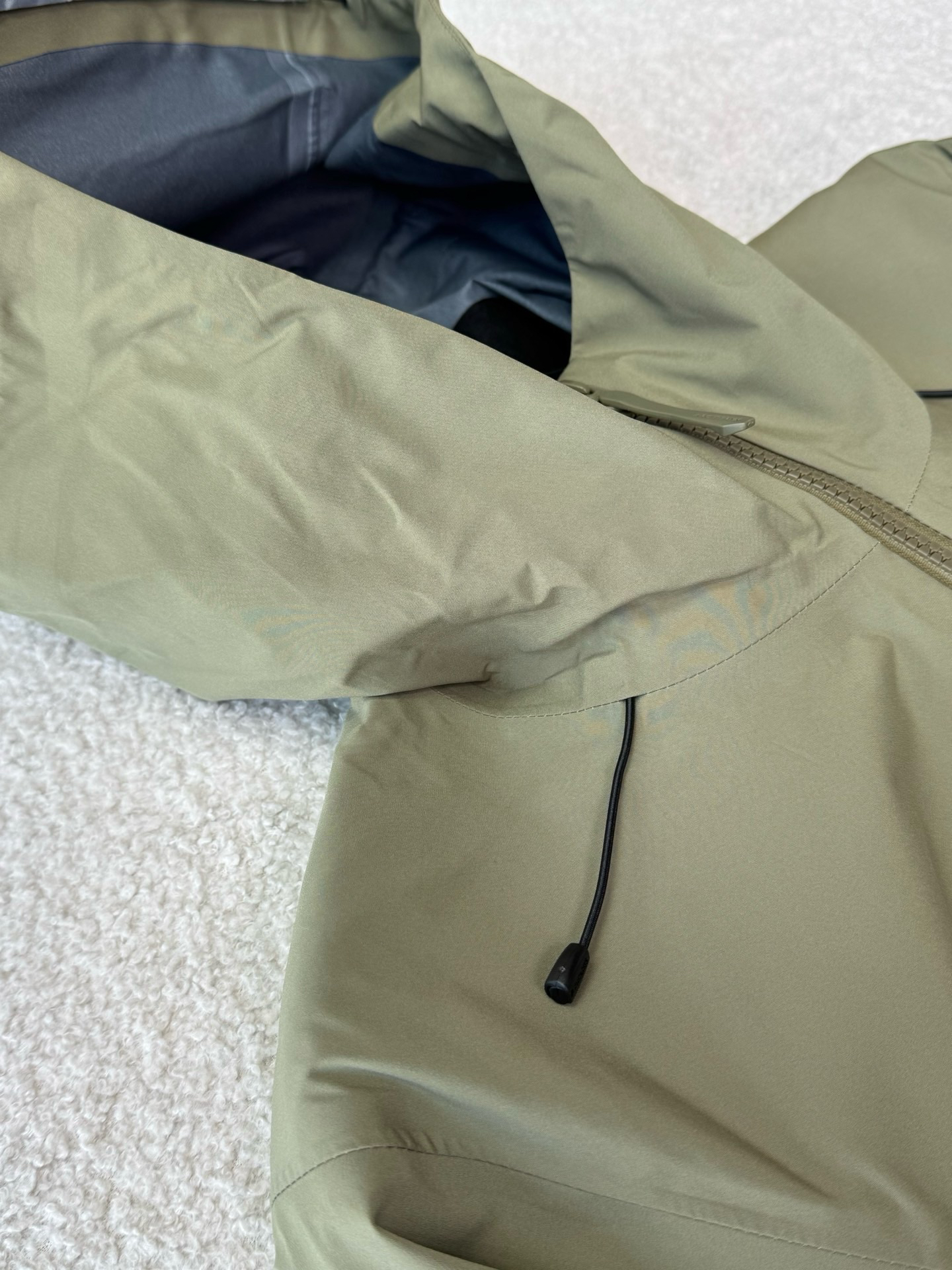 头盔兼容的Storm Hood™风兜,内置可调节的金属支撑条,能贴合头部轮廓,在强风下也可精准固定不遮挡视线,风兜边缘的多层复合结构进一步强化了抗风与防水表现