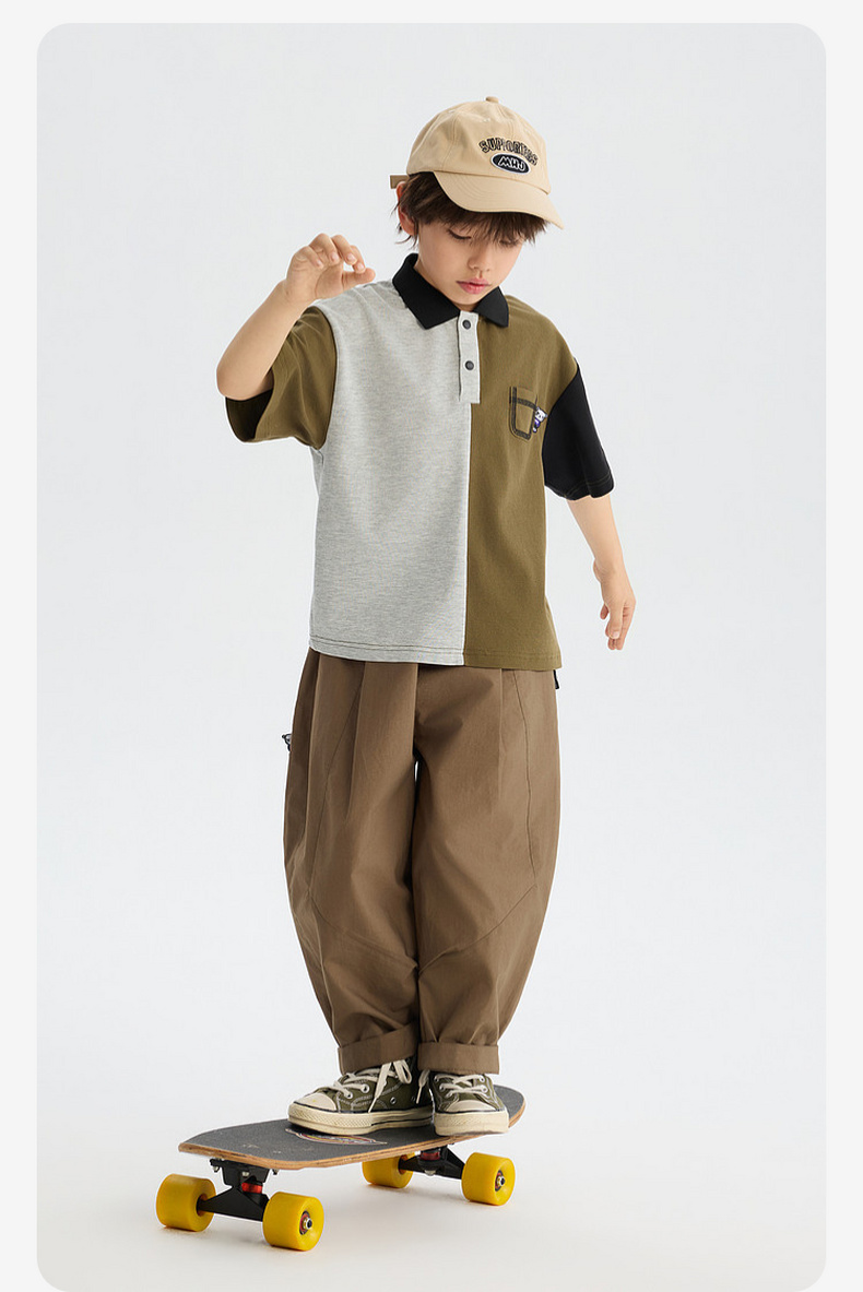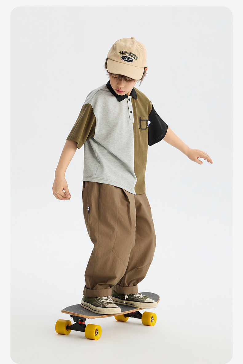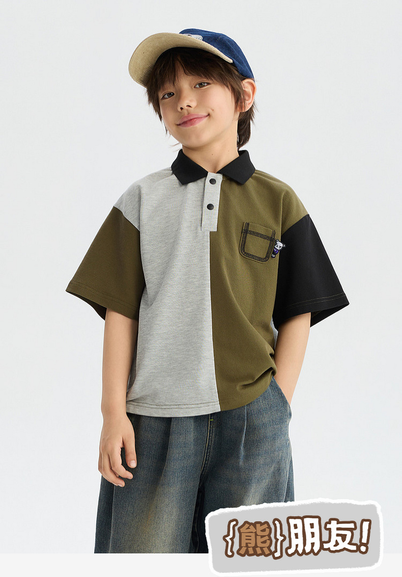 MANHOJIA【拼色POLO】儿童T恤春夏新品凉感防蚊3A抗菌短袖POLO
