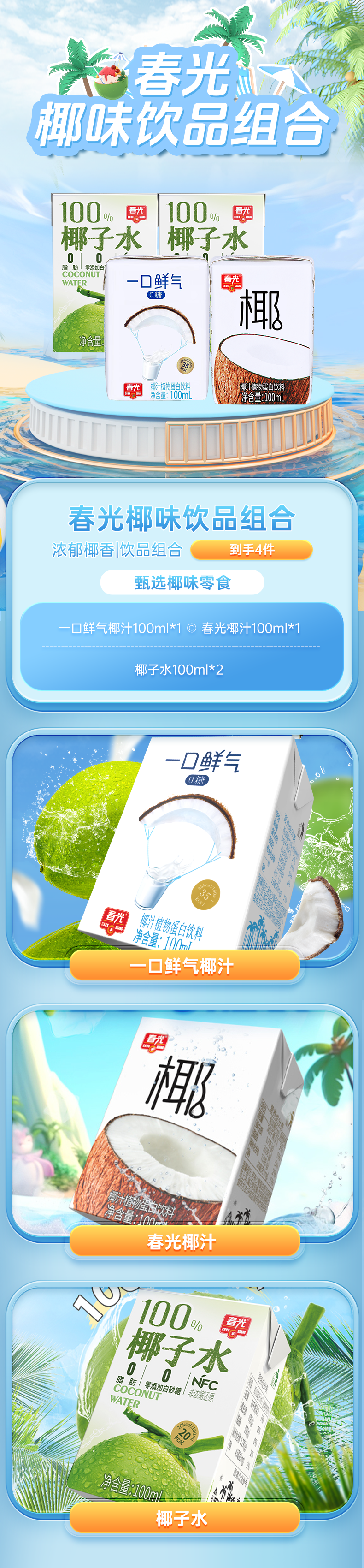 100ml一口鲜气+100ml春光椰汁+100ml椰子水*2【会员尝鲜装】