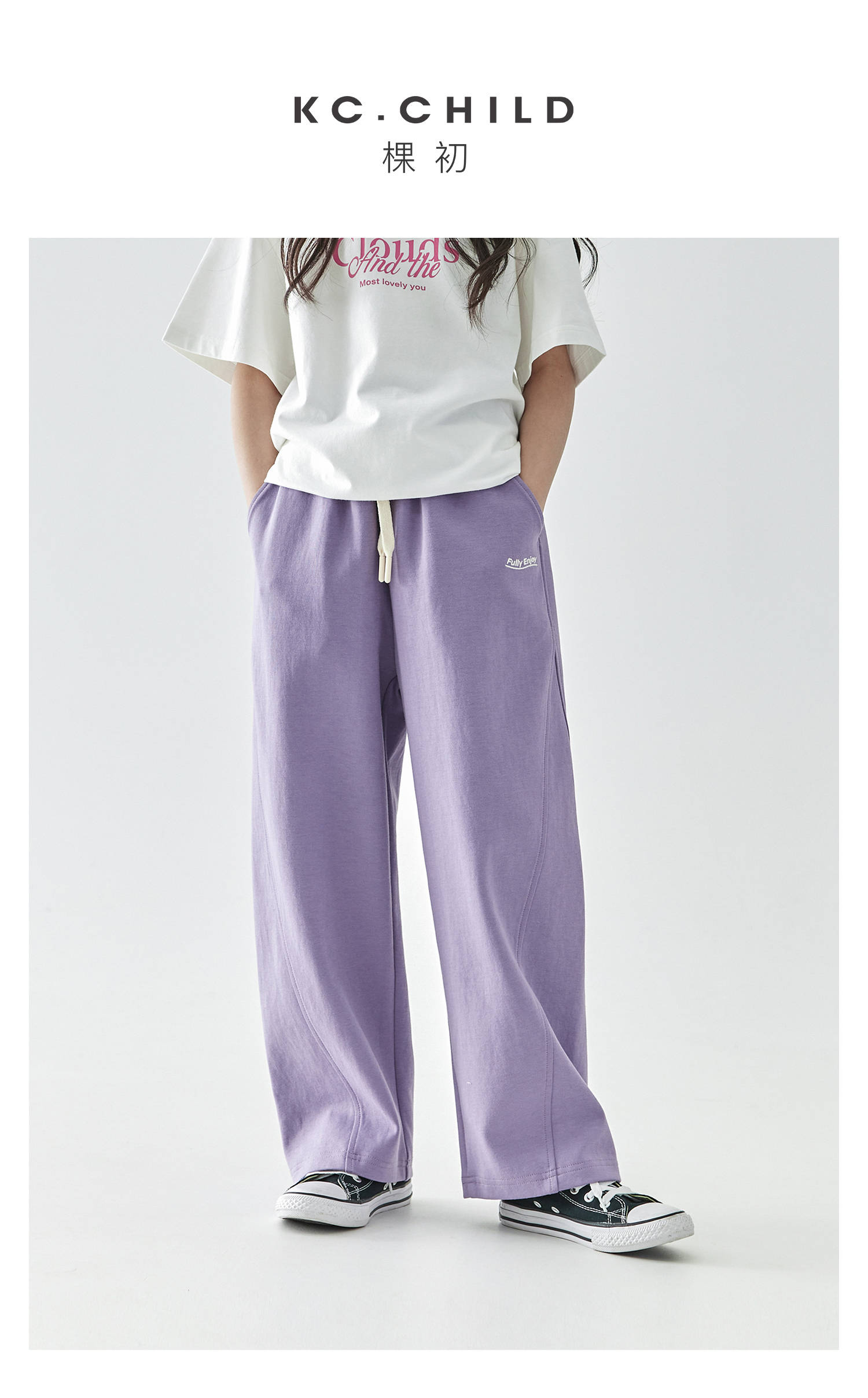 棵初2025年春季新款童装纯色休闲宽松卫裤运动裤