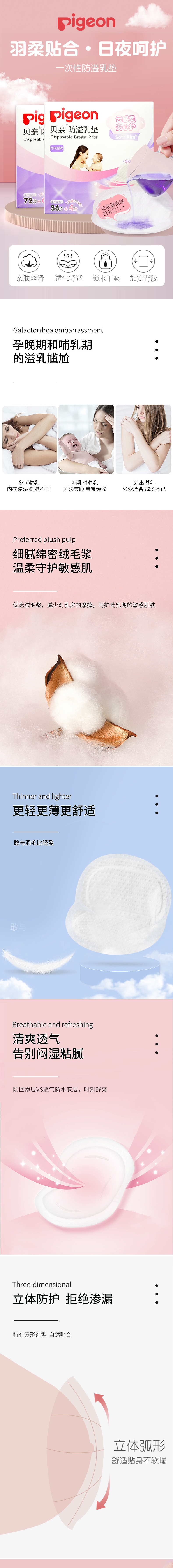 贝亲防溢乳垫36+4/72片盒装一次性孕产妇PIG-QA47/QA48