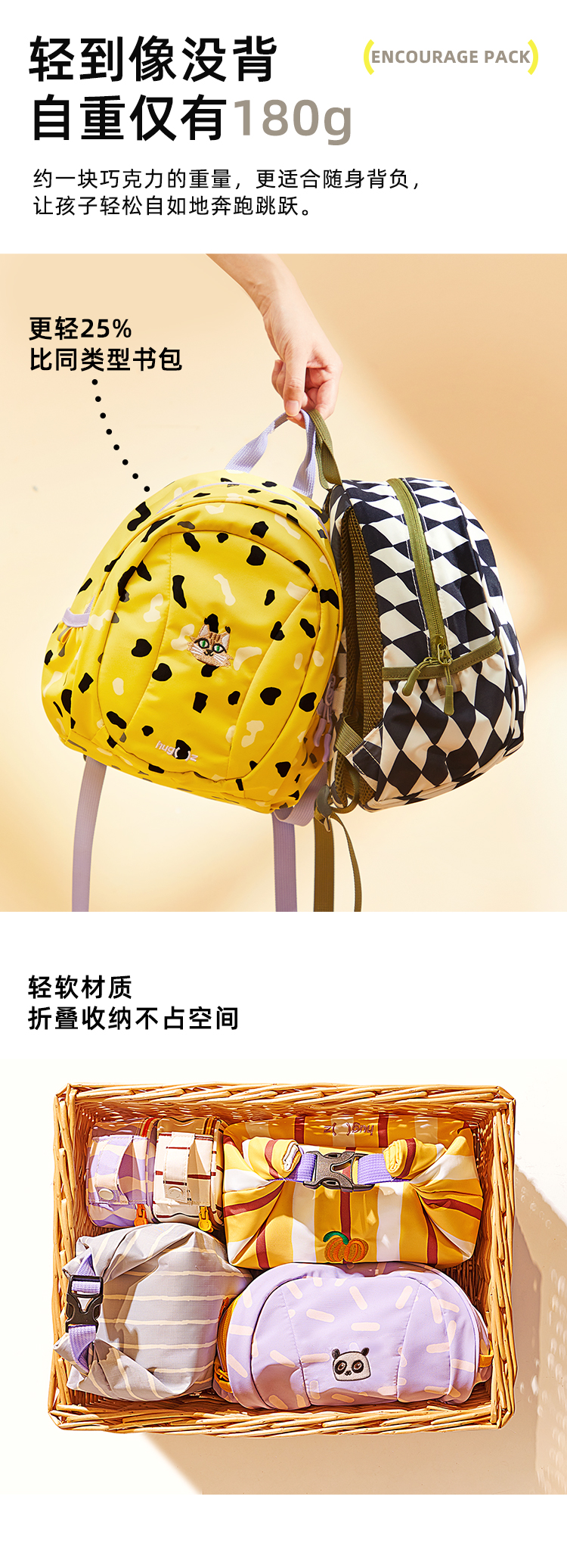 hugz儿童书包幼儿园男女生儿童双肩包防水大容量轻便外出游小背包