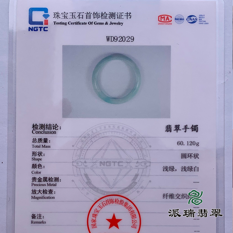 派瑞翡翠 翡翠手镯 糯种 浅绿