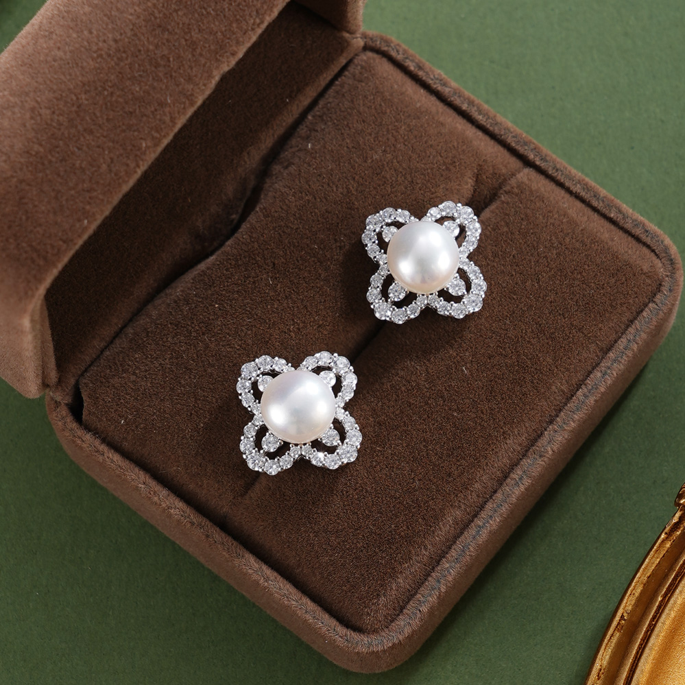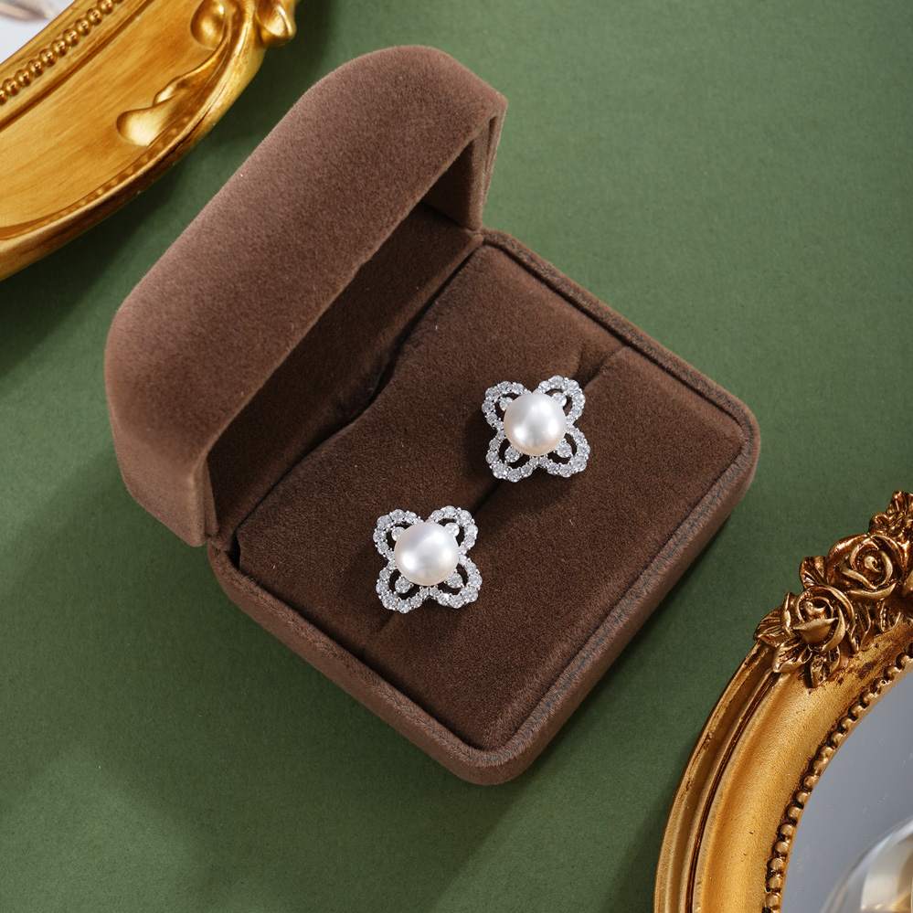 子佩集【四叶秀馨】银S925珍珠惜王妃耳钉【EM3182-XF】四叶草2602