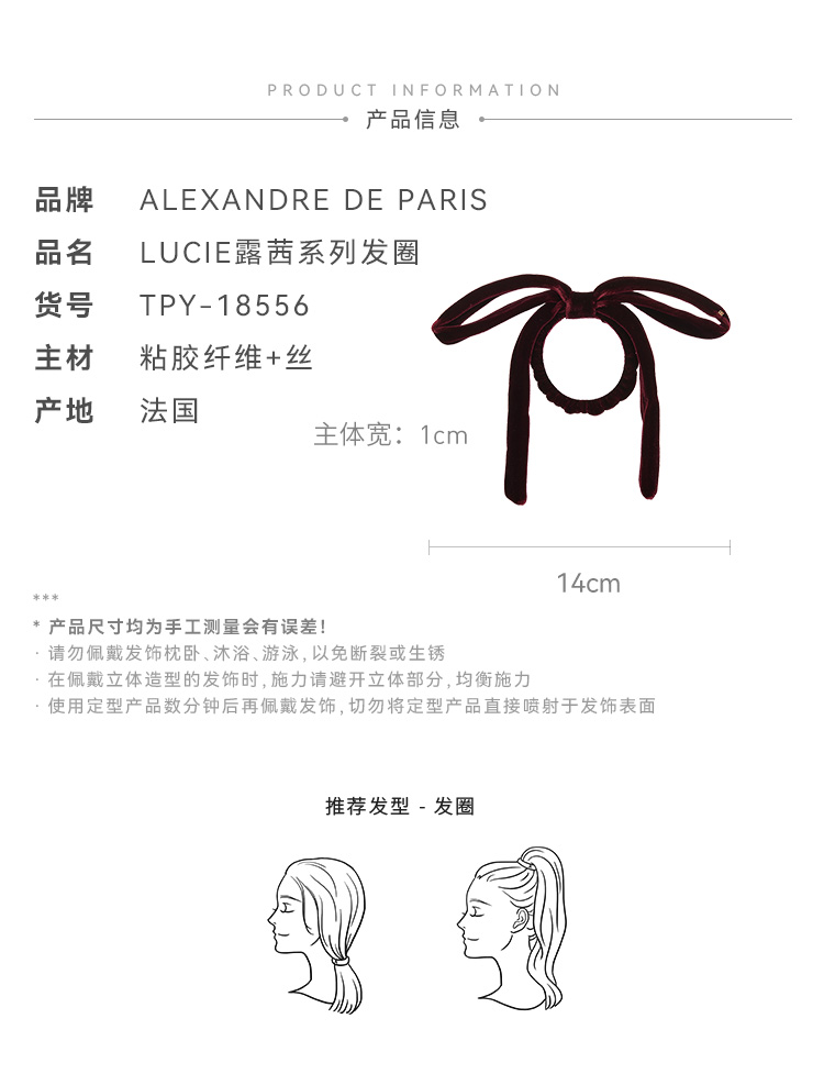 品牌直发 Alexandre De Paris 露茜系列发圈 H深棕色