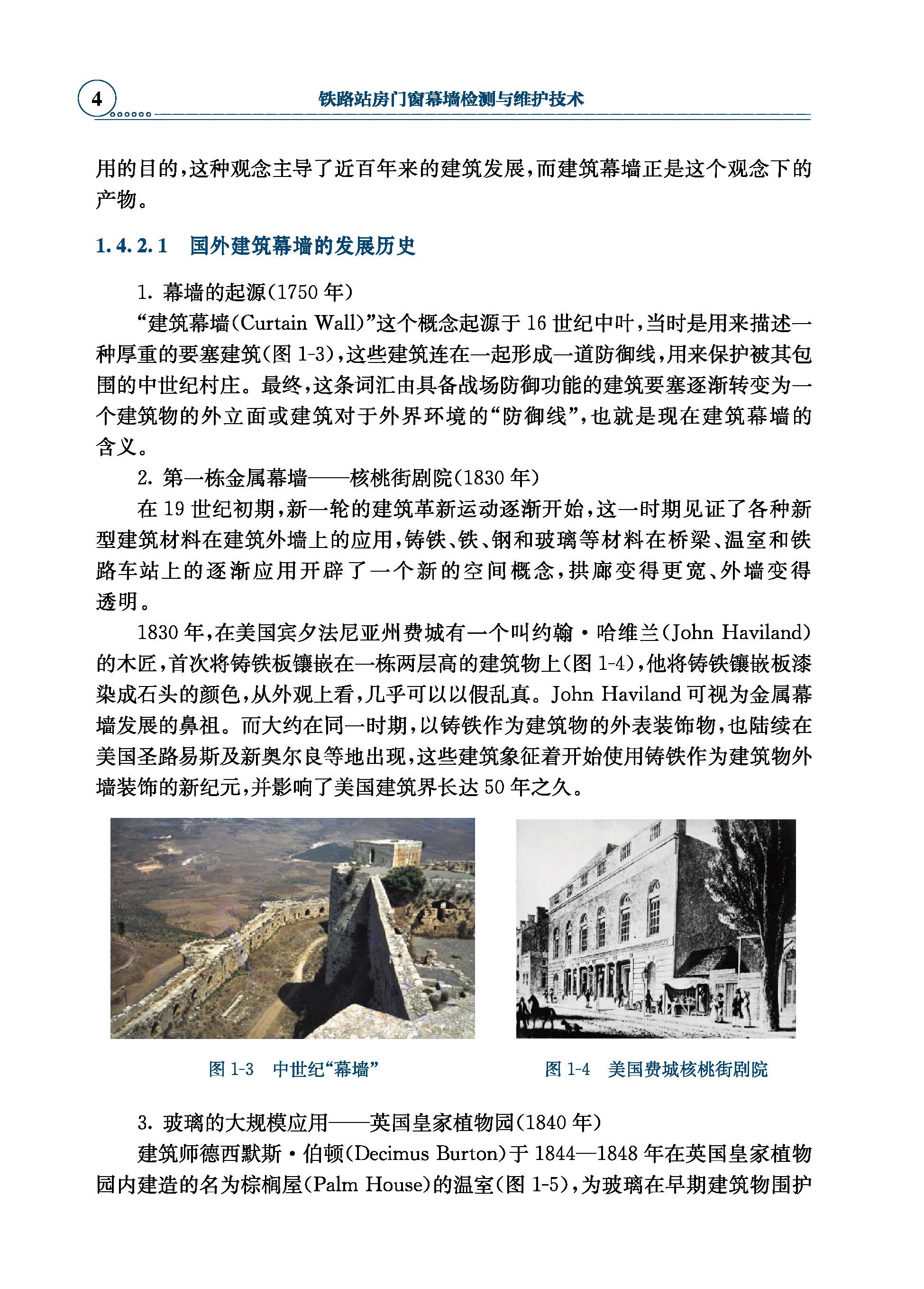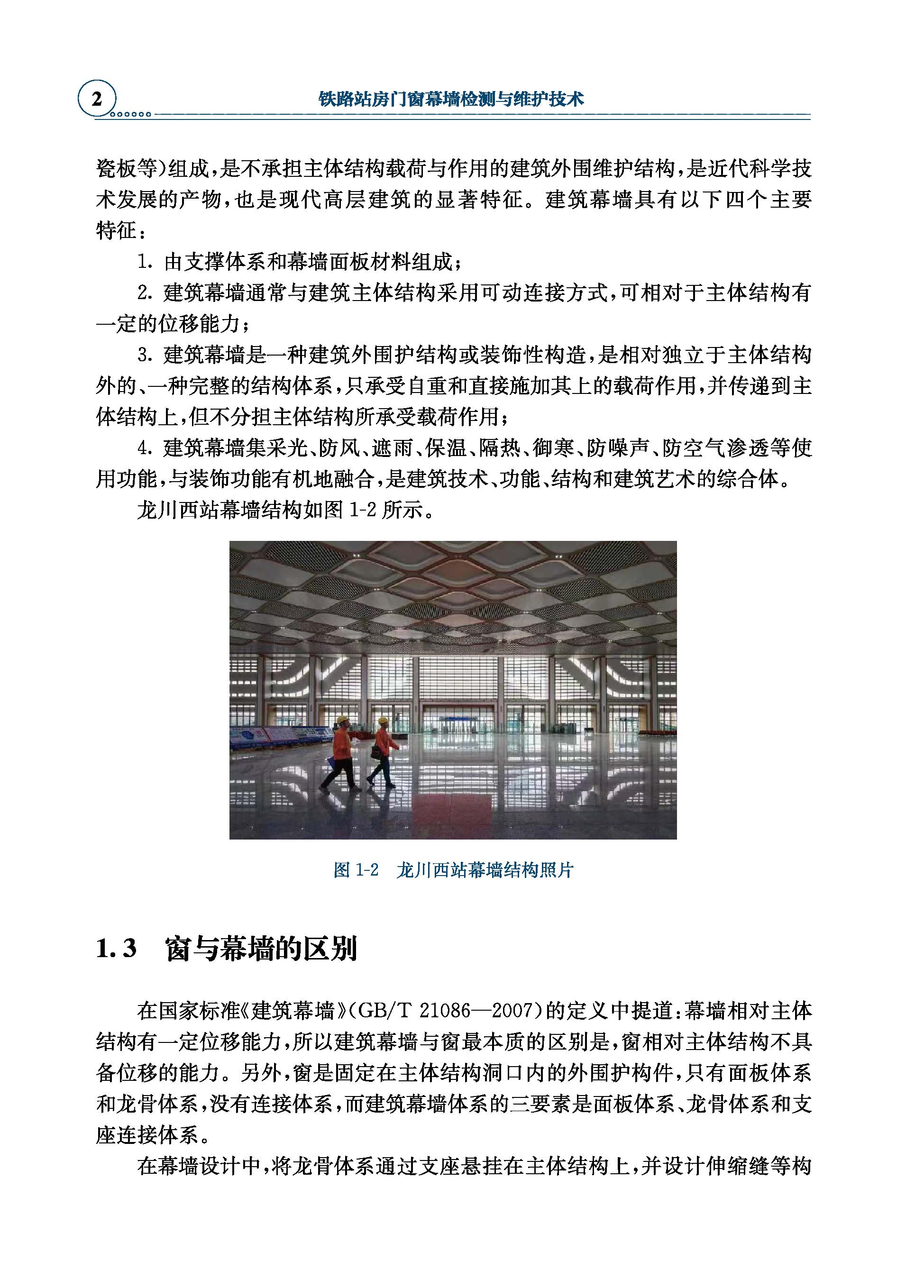 本书用全生命周期的理念从技术、材料、施工、维护维修、安全检测评估等方面阐述铁路站房门窗幕墙的特点和建造技术,分析总结铁路站房门窗幕墙安全管理和安全运营的技术状态,并融合国内建筑门窗幕墙检测与维护维修领域具有较强专业知识及实践经验的一线资料,结合现行国家、行业及地方标准和规范,系统地介绍铁路客站门窗幕墙检测与维护技术,由浅入深地描述铁路客站门窗幕墙的基础知识、典型失效模式、检测与维护维修新技术。