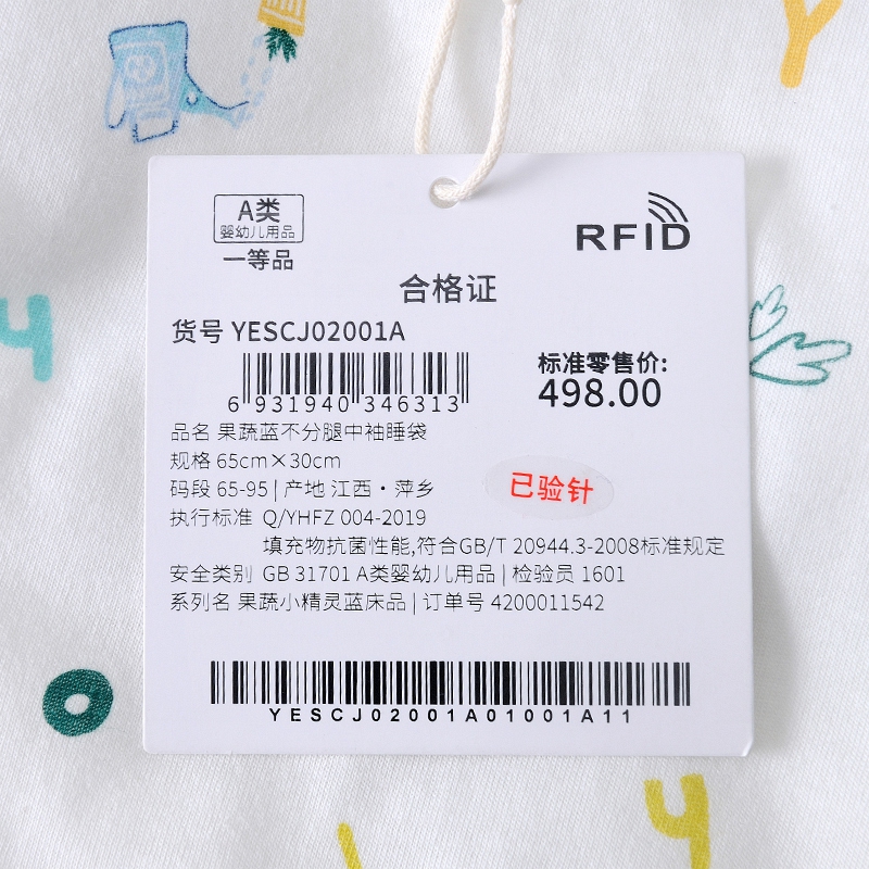 英氏婴儿果蔬系列睡袋宝宝分腿夹棉睡衣YESCJ02001A YESCJ02002A