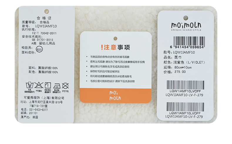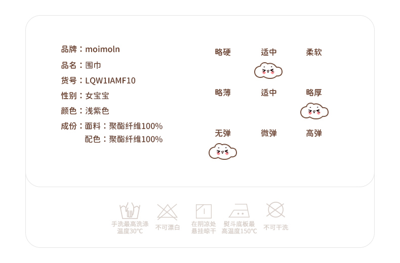 【尺码偏小请拍大一码】moimoln小云朵童装2021年冬季新款女宝宝围巾儿童卡通保暖围巾LQW1IAMF10
