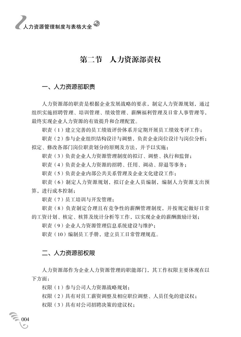 人力资源部作为企业人力资源管理的职能部门,其工作权限主要体现在以下方面: