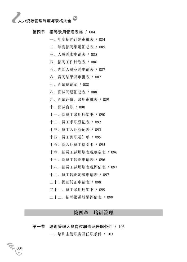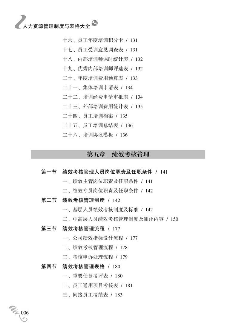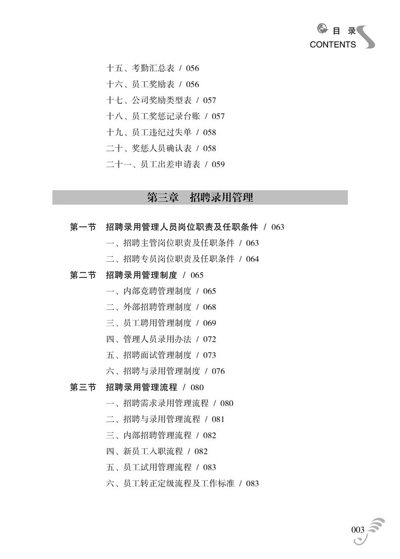 《人力资源管理制度与表格大全》为各类企业单位推进制度管理,提升人力资源管理相关人员的执行力提供了即学即用的标准化工具及具有指导意义的各项管理制度和流程。即本书包括超实用的管理制度制度+管理流程+管理表格 ,另外本书附有光盘,随查随用,随用随查,方便实用。
